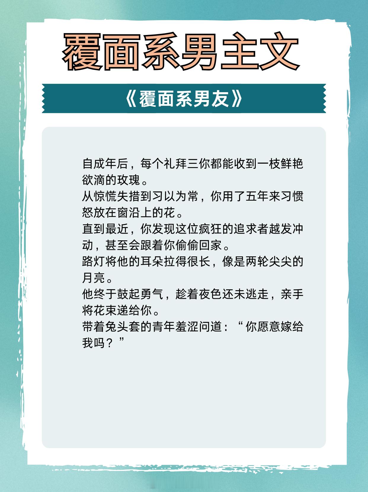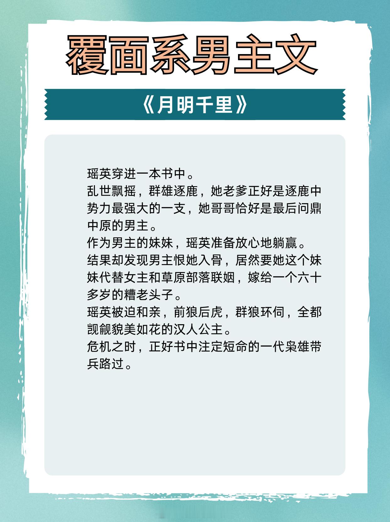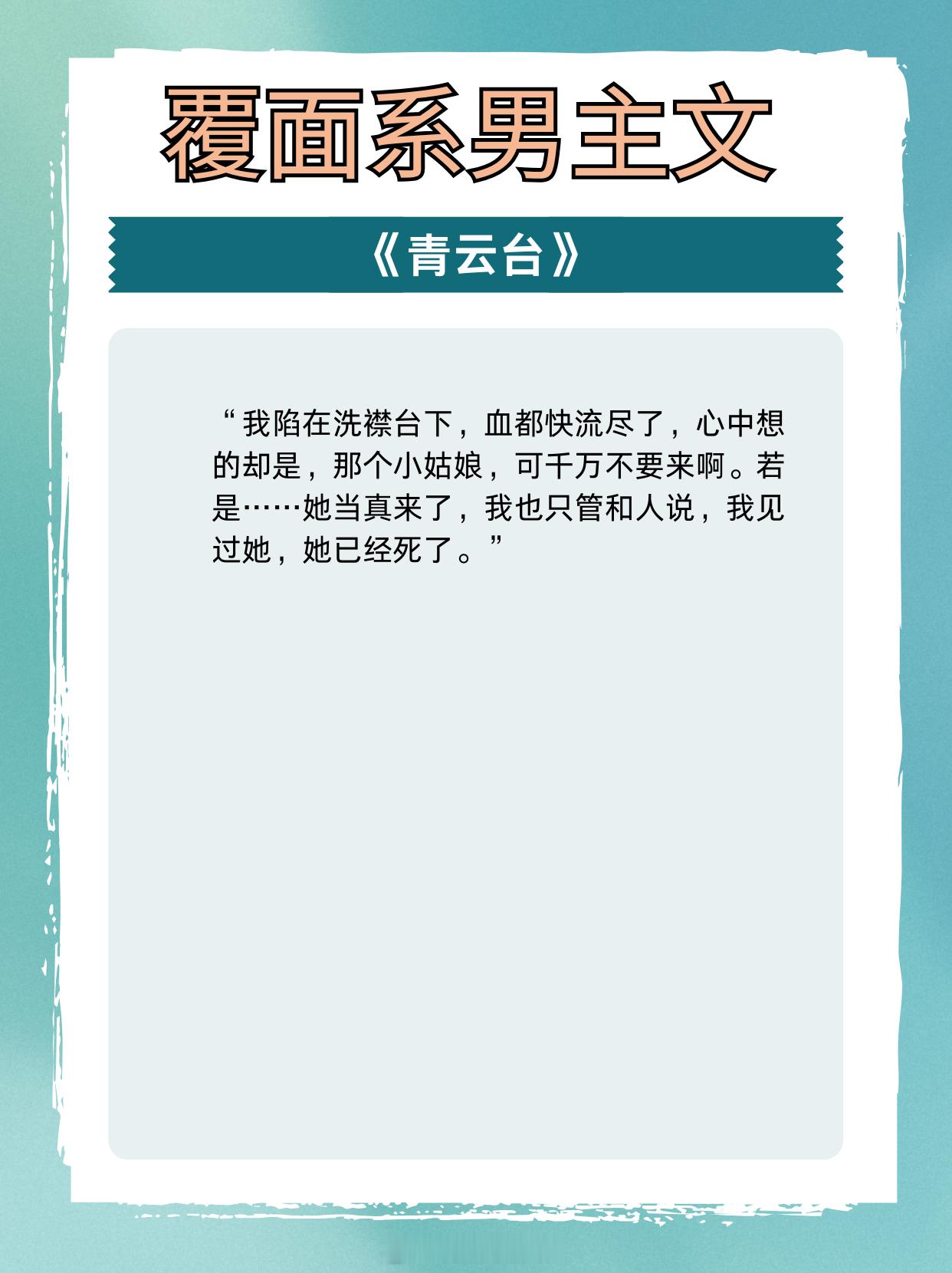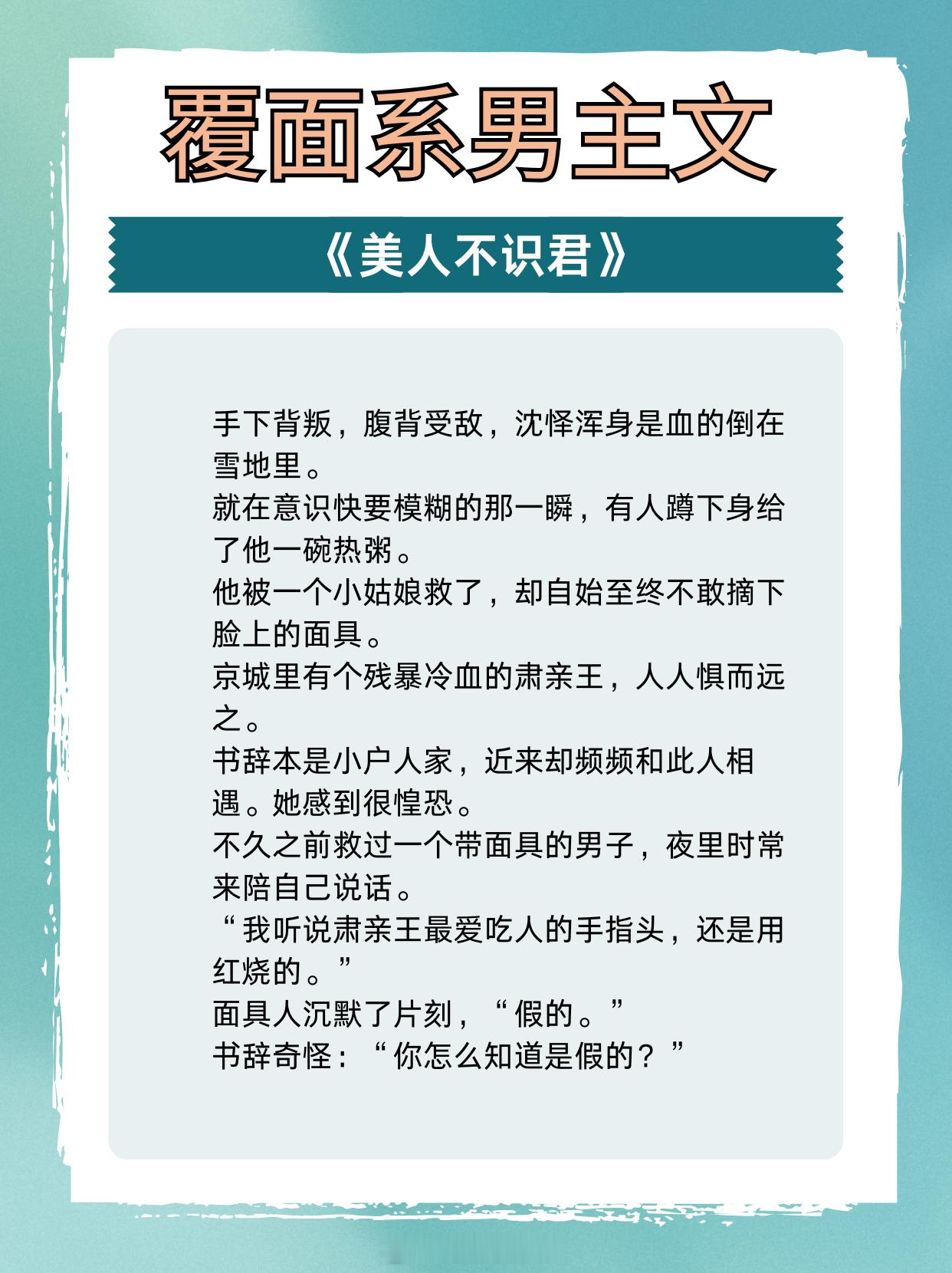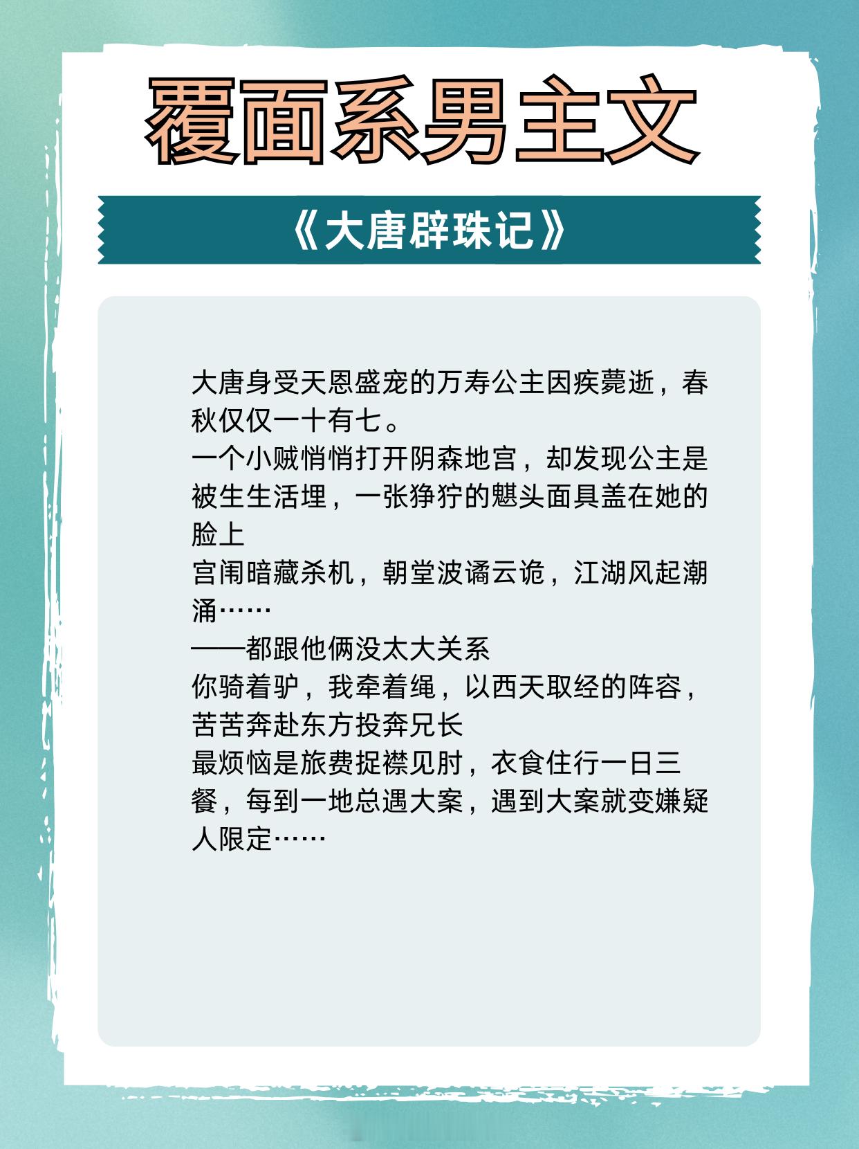 top级覆面系男主,纯爱战神不会摘下他的面具!1、《如何阻止男主发疯》作者:爆炒小黄瓜2、《大唐辟珠记》作者:饭卡3、《覆面系男友》作者:翠沼4、《月明千里》作者:罗青梅5、《青云台》作者:沉筱之6、《雪满长安》作者:文成三百斤7、《无人救我[无限]》作者:织朱8、《美人不识君》作者:赏饭罚饿9、《软玉温香》 作者:林春令好看的小说推荐 这小说写在我心趴上了