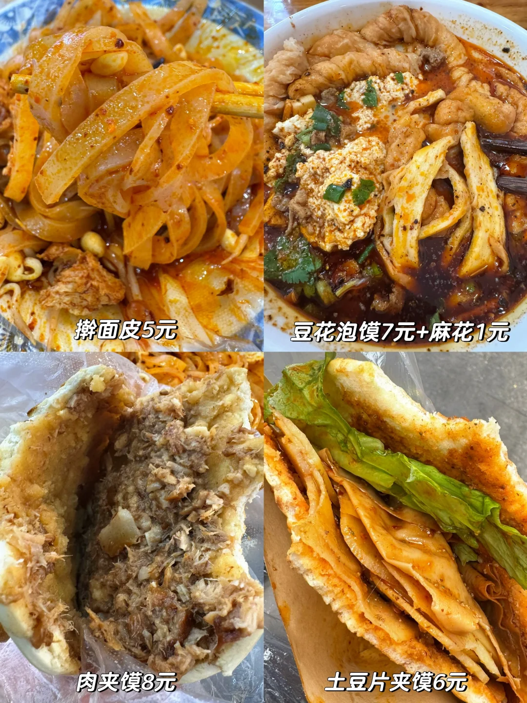 [向右R]宝鸡站400米美食圈:老风府豆花泡馍(7元)、新开路/经一路美食步行街(擀面皮、土豆片夹馍)。