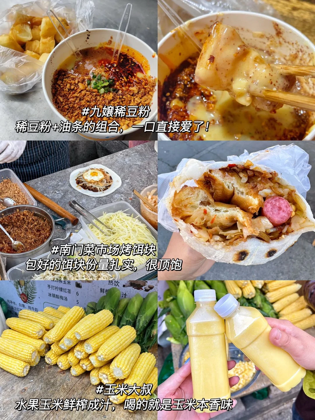 📍南门菜市场烤饵块:现擀的饵块皮很有嚼劲,可以选加爱吃的小料(推荐+油条、火腿肠和煎蛋),包好后一个圆滚滚的,很顶饱