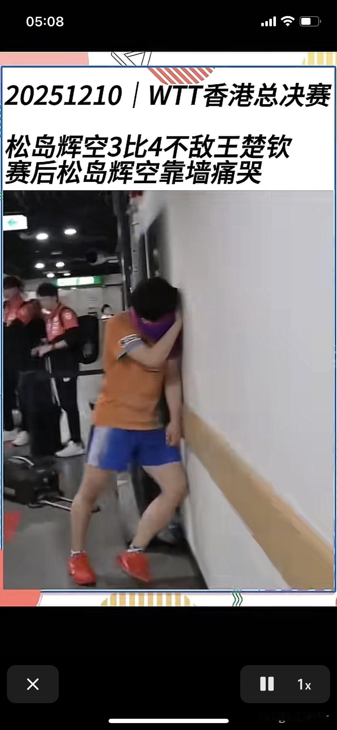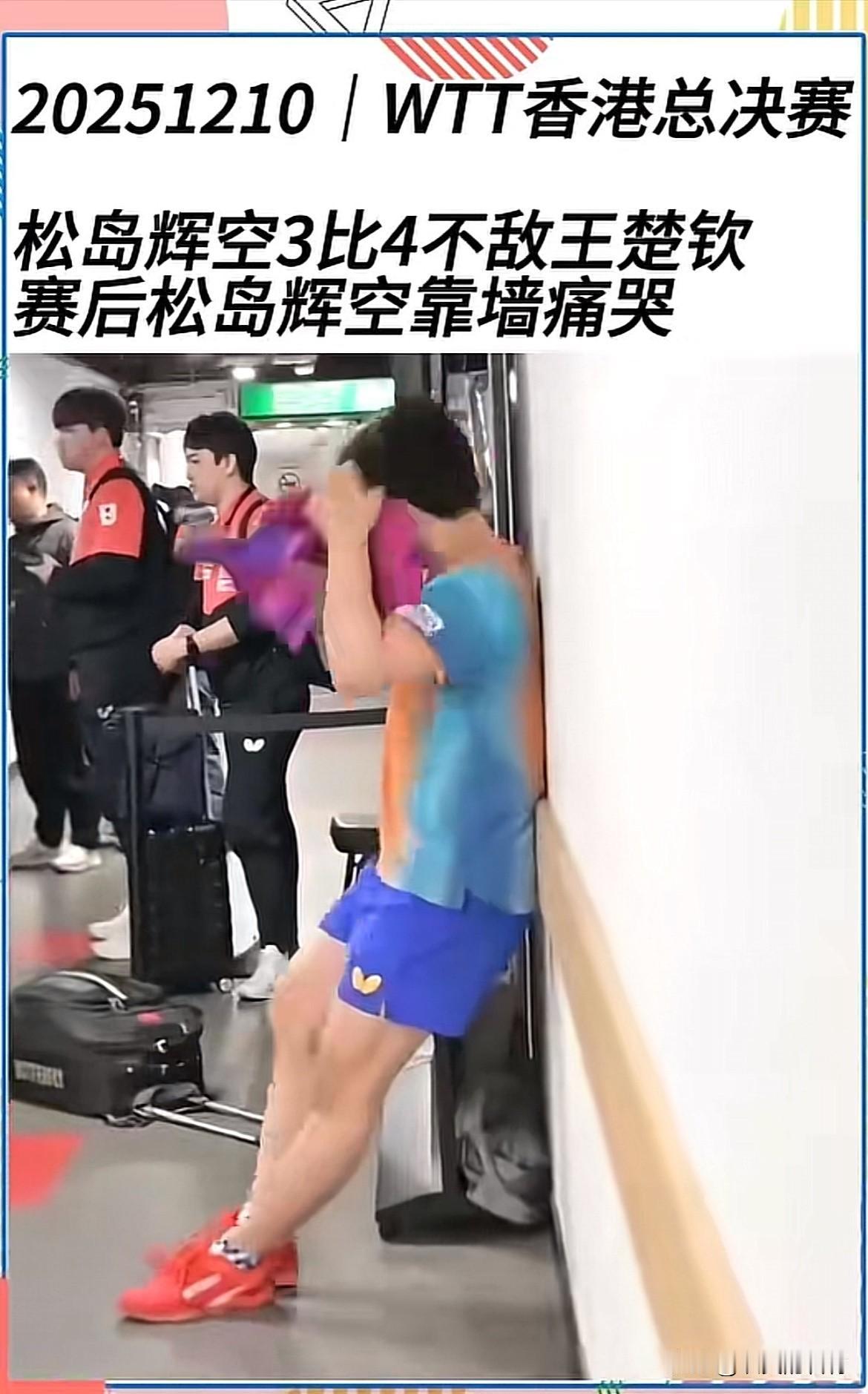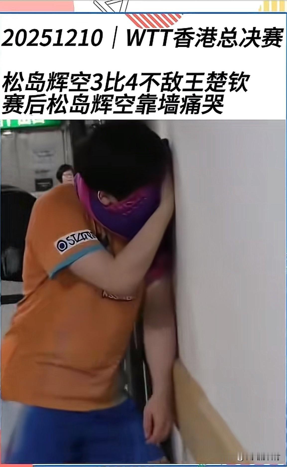 松岛辉空3:4输王楚钦松岛辉空哭了 赛后一向什么都不在乎的少爷松岛辉空靠墙哭了。的确要哭。他应该是遗憾吧。 第一局第二局松岛辉空赢了 第三局王楚钦赢了 第四局松岛辉空赢了 松岛辉空大比分3:1王楚钦 第五局松岛辉空9:6,领先,已经看到了希望。但是第五局被王楚钦追平比分。叫暂停也没能阻止王楚钦追分,最后王楚钦12:10,拿下比赛。这时候我就知道松岛辉空没戏了。因为王楚钦状态提升了。果然第六局第七局都是王楚钦赢了。最后王楚钦4:3战胜松岛辉空。 松岛辉空的确涨球了。将来的确是国乒的劲敌,松岛真是打的很好了,才18岁还是个孩子啊[呲牙],对于他来说虽然可惜,但他不难过我们就要难过了。看比赛比运动员还紧张,靠着意志力顽强的赢下来了,心里放松了,虽然知道比赛没有应该。输赢都正常,但还是希望王楚钦赢。