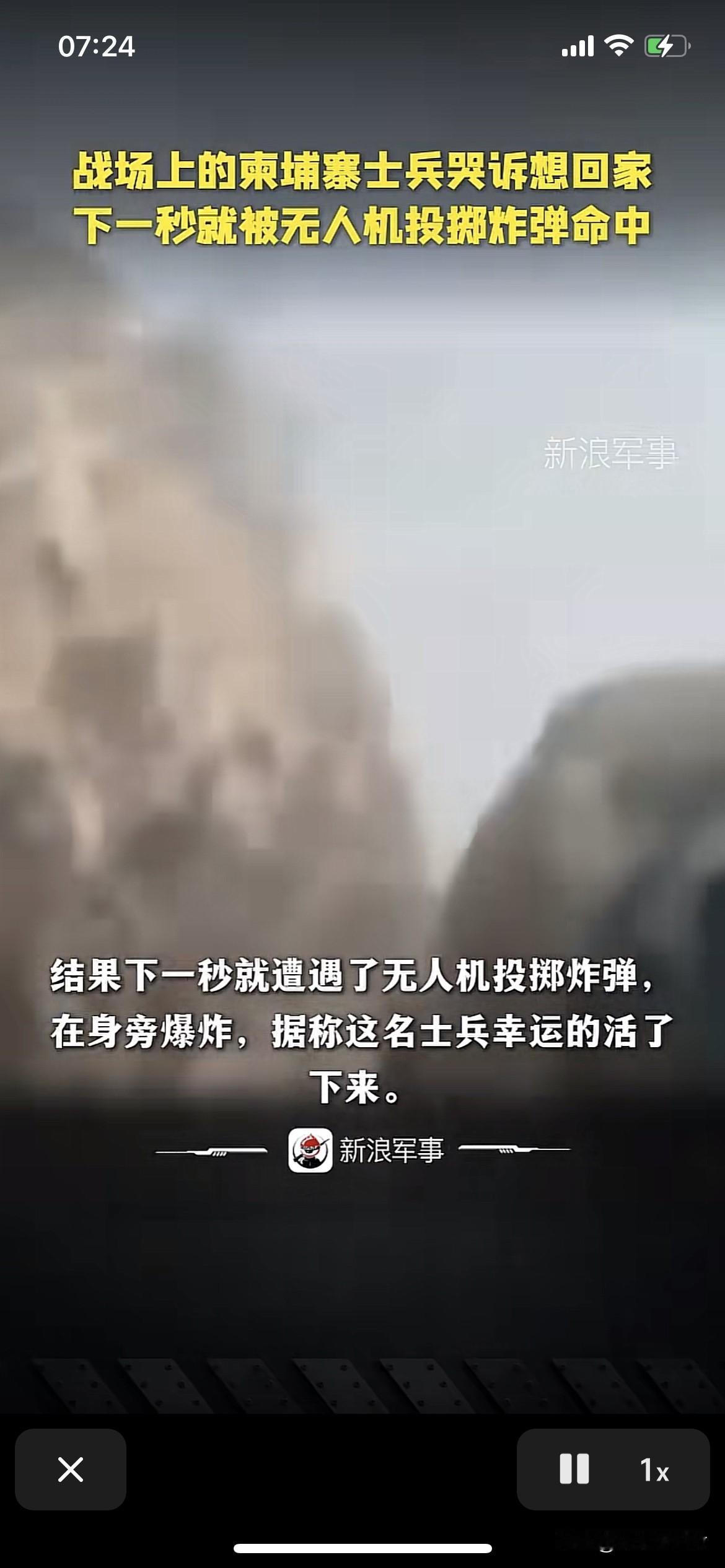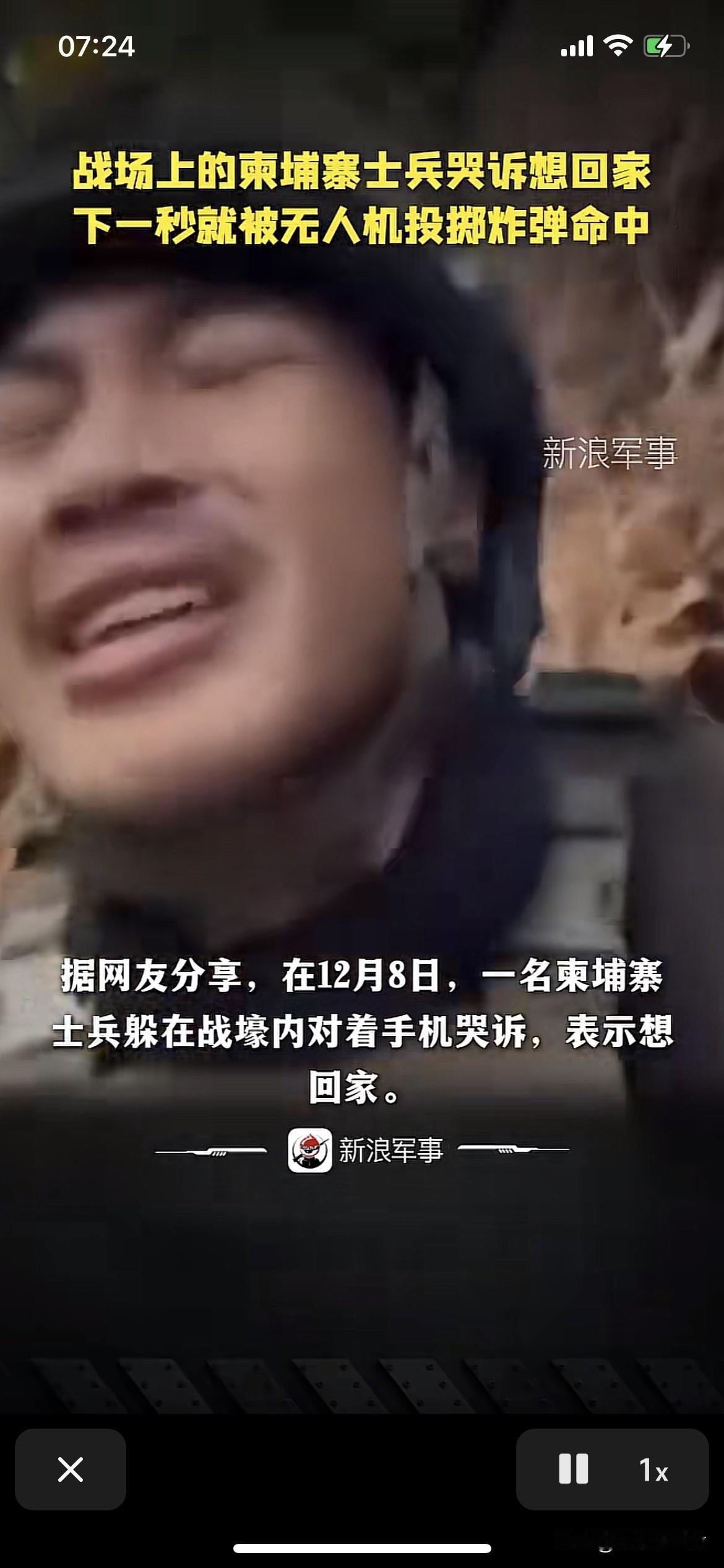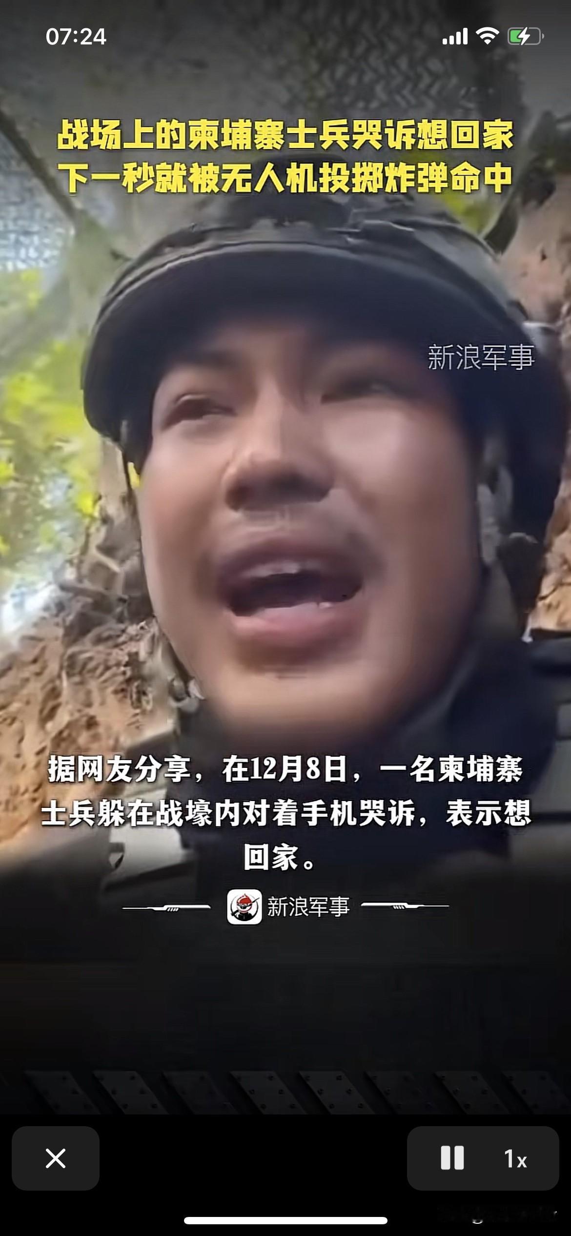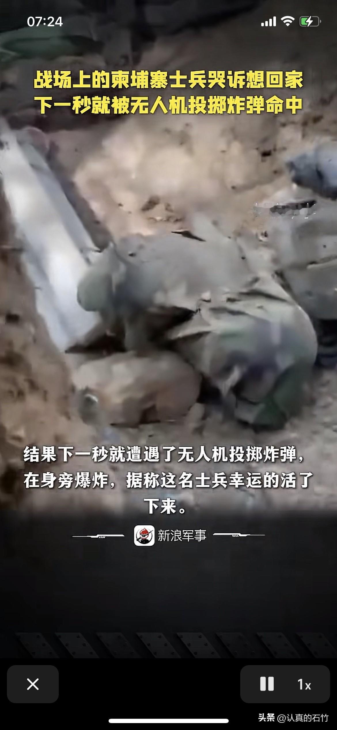 一名柬埔寨士兵哭诉想回家,下一秒就遭遇了无人机投掷的炸弹。幸运的是炸弹在他旁边爆炸。他侥幸的活了下来。他还是个孩子。就要成为炮灰。不能次次这么幸运。 战争是残酷的。
