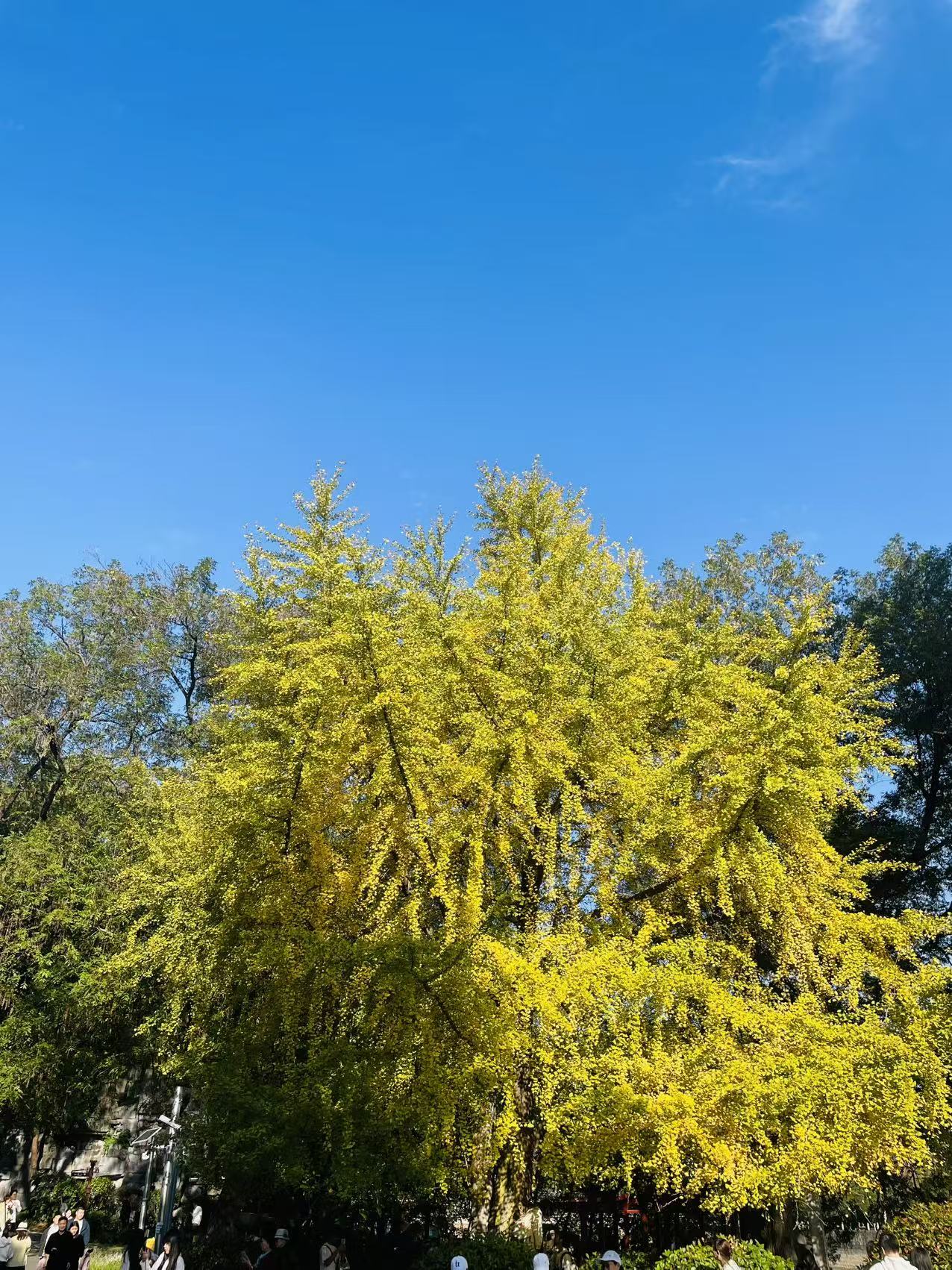 ✅银杏大道:从北门进入,往年嘉湖方向走(第一个岔路口走左边),就能看到一片金黄的银杏林。高大的银杏树如金色巨伞,红色小火车嘟嘟从树下经过,仿佛步入了童话世界🎠。