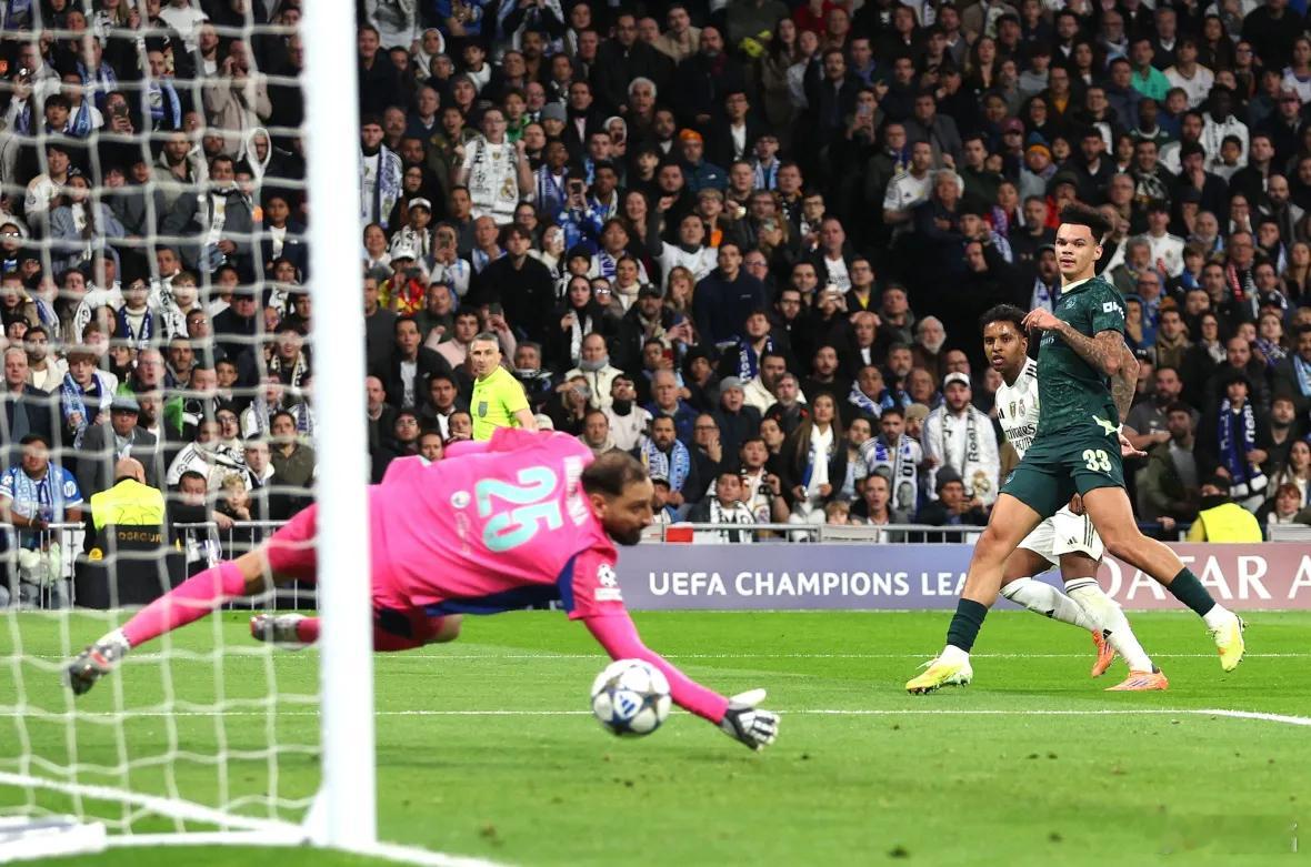 皇马1比2曼城 皇马16次射门只有1次命中目标,多纳鲁马没有扑出罗德里戈的射门,