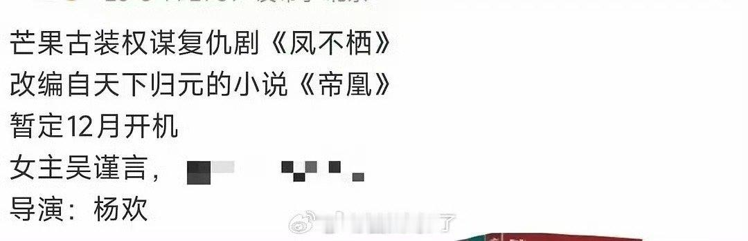吴谨言魏哲鸣或将主演凤不栖吴谨言刚官宣新剧《重生之门源起》,又有新剧本的消息了,电视剧《凤不栖》女主吴谨言、男主魏哲鸣,主创班底是芒果TV。导演杨欢。拍了悬疑剧之后,咱们吴姐又要回归大女主剧了~网传吴谨言魏哲鸣合作凤不栖