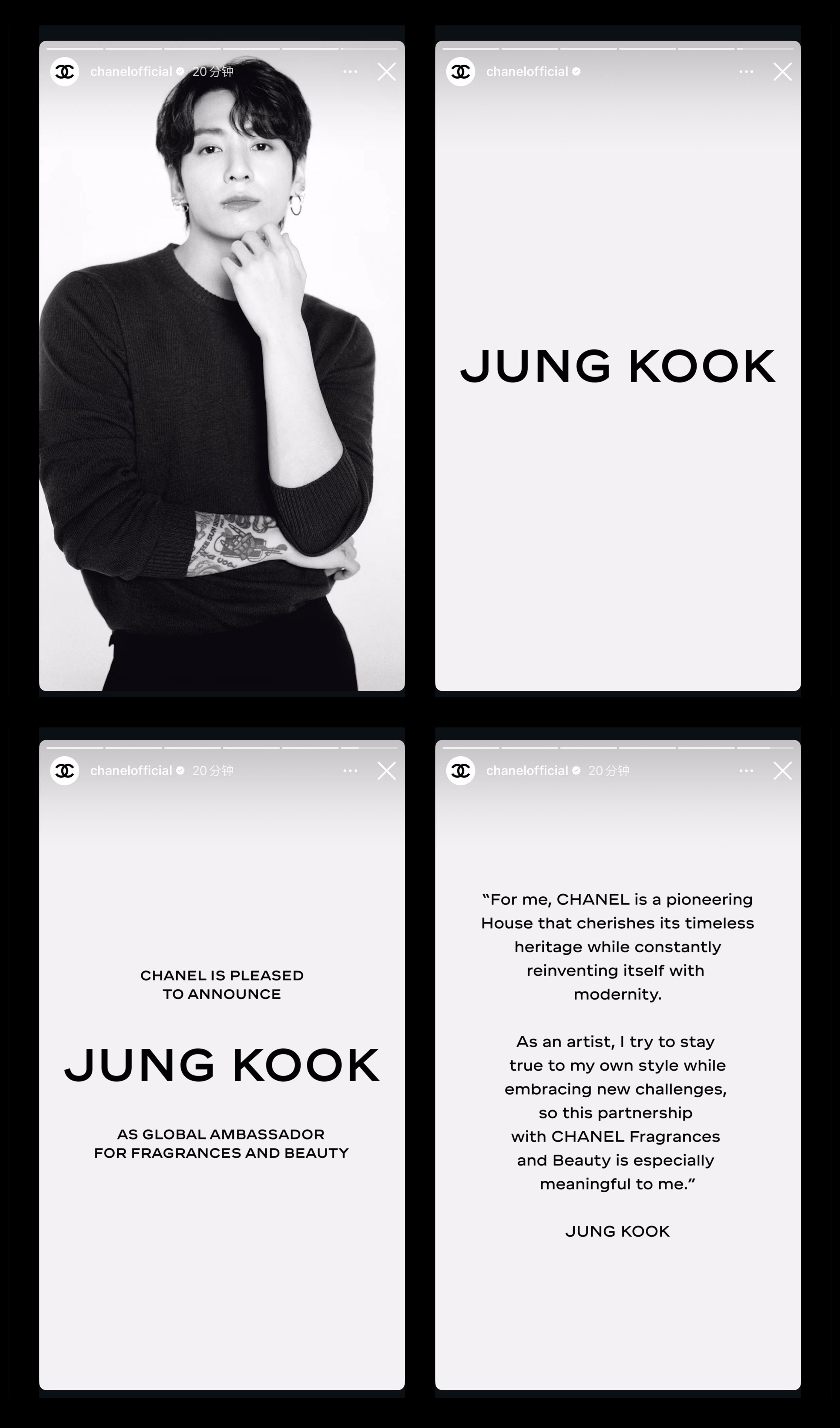正式官宣 !CHANEL Beauty 新动向 ~ 今日正式宣布韩国歌手田柾国 Jung Kook 出任品牌 Global Ambassador for Fragrances and Beauty !全球 Title 、顶级头部合约正式到手 !👏 田柾国 香奈儿