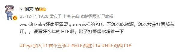涵艺:zeus和zeka好像更需要guma这样的AD 不吃资源打团也有用