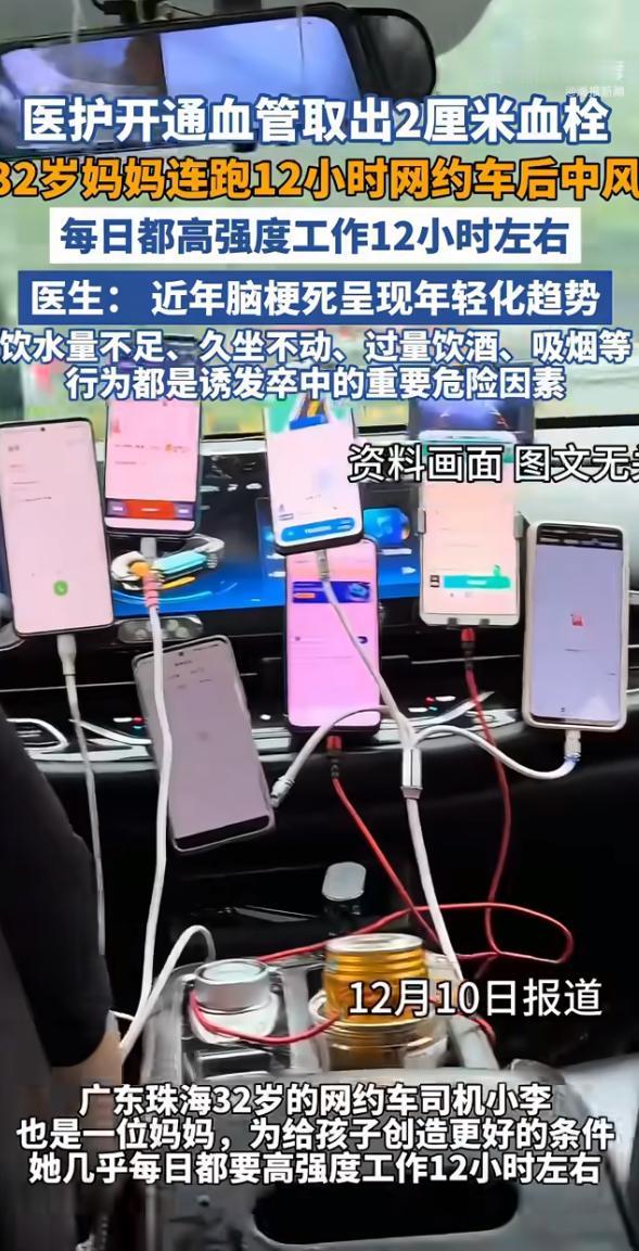 看到这个新闻的时候,我心里真的挺不是滋味的。广东珠海一位32岁的年轻妈妈,为了让孩子过上更好的生活,咬着牙当起了全职网约车司机。每天在车上一坐就是12个小时,风里来雨里去,几乎不怎么休息。就在前几天早上,她刚起床准备去洗漱,突然感觉左边身体完全失去了知觉,“扑通”一声摔倒在地。家人赶紧把她送医,医生诊断是脑卒中,也就是我们常说的“中风”。好在送医及时,医生从她血管里取出了一个约2厘米长的血栓,这才保住了命,术后第二天她就能下地走路了。 这事儿听起来惊心动魄,但仔细想想,其实离我们并不远。很多人觉得“中风”是老年人的专利,年轻人身体底子好,怎么折腾都没事。可现实狠狠打了这种想法一巴掌。现在的年轻人,尤其是像这位宝妈一样的新业态劳动者,为了碎银几两,真的是在拿命换钱。每天12个小时坐在狭小的驾驶室里,喝水少、上厕所难、吃饭不规律,甚至连伸个懒腰的机会都很少。这种长期的久坐、高压、作息紊乱,其实就是给血管“埋雷”。 咱们换位思考一下,这位宝妈肯定也知道累,也知道身体不舒服,但她为什么还要坚持?因为她是一个母亲,她想给孩子多挣点奶粉钱,想让家里的日子过得宽裕点。这种为了家庭拼命付出的母爱,真的让人既心疼又敬佩。但问题是,如果把身体累垮了,甚至像这次一样差点丢了命,那挣来的钱还够不够支付医药费?就算这次抢救及时没留下后遗症,但谁能保证下次还能这么幸运?身体是革命的本钱,这句老话一点都没错。没有了健康这个“1”,后面有再多的“0”都是空的。 再说说我们普通打工人,其实也面临着类似的困境。不管是网约车司机、外卖小哥,还是写字楼里的白领,大家好像都在一个停不下来的“转盘”上。为了业绩、为了绩效、为了生活,熬夜加班、久坐不动成了常态。很多人年轻轻的就一身毛病,颈椎病、高血压、高血脂,却总觉得自己还年轻,扛一扛就过去了。这种侥幸心理,往往就是悲剧的导火索。 好在现在社会对这些新业态劳动者的保障越来越重视了。像北京、天津、上海这些地方,都在出台各种政策,比如职业伤害保障、休息驿站、医疗报销简化等等,希望能给这些奔波在路上的人撑起一把“保护伞”。但说到底,这把伞再大,也比不上自己爱惜身体。平台算法再优化,也需要咱们自己主动踩下“休息”的刹车;保障再完善,也比不上平平安安不出事。 所以,我想跟所有正在努力生活的朋友们说一句:累了就歇会儿,渴了就喝口水,饿了就吃口热乎饭,千万别憋着。少接一单,身体好了能接更多单;把身体跑垮了,那就真的一单都没了。流水是平台的,命可是自己的,家是自己的。 各位朋友,你们怎么看这件事?是不是也觉得现在的年轻人压力太大了?或者你也有过为了生活拼命硬扛的经历?欢迎在评论区聊聊,让我们一起给彼此加加油,也提醒身边的亲朋好友,别忘了——健康才是最大的财富。 (案例来源:海报新闻)