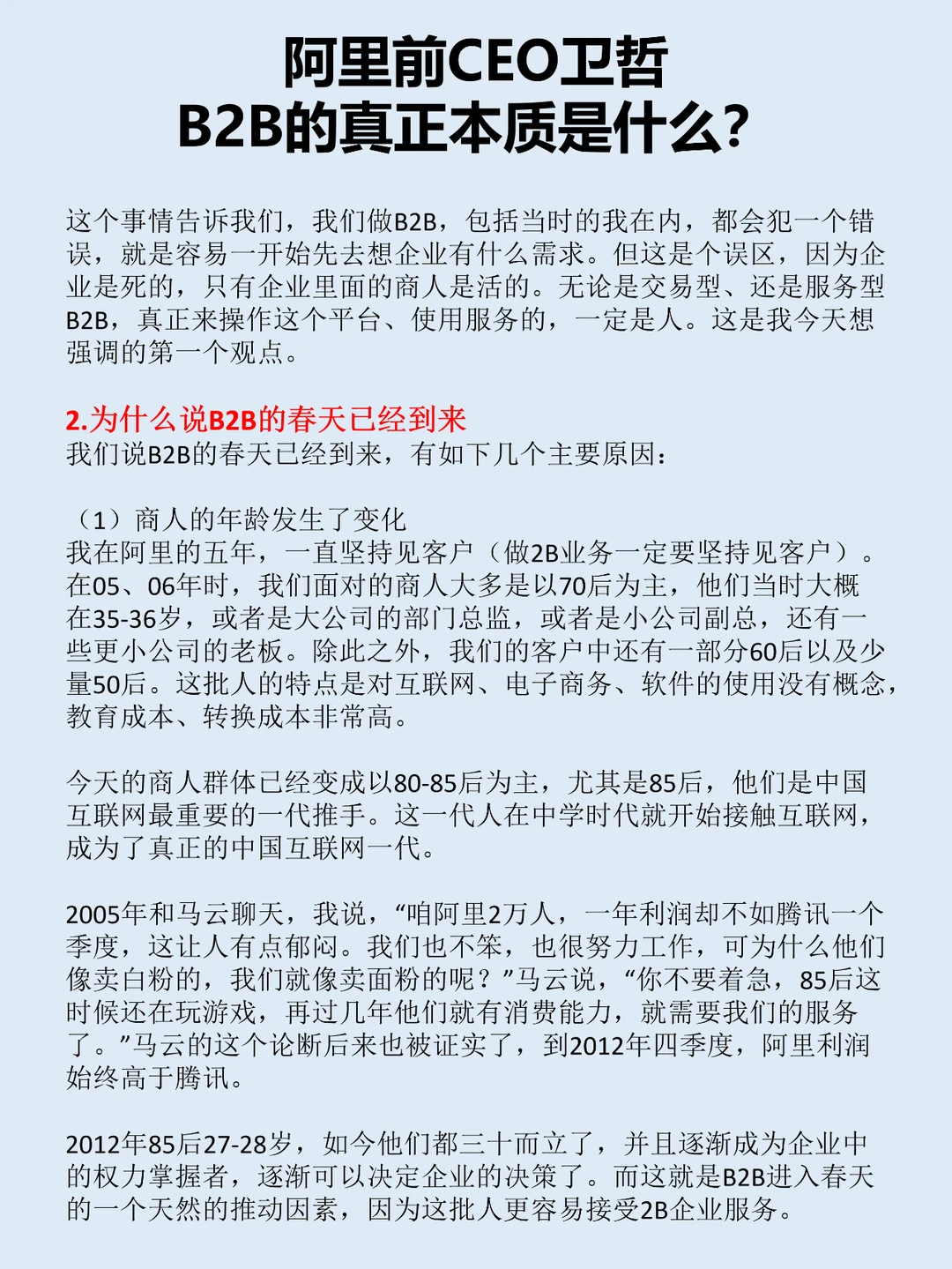 阿里前CEO卫哲B2B的真正本质是什么?