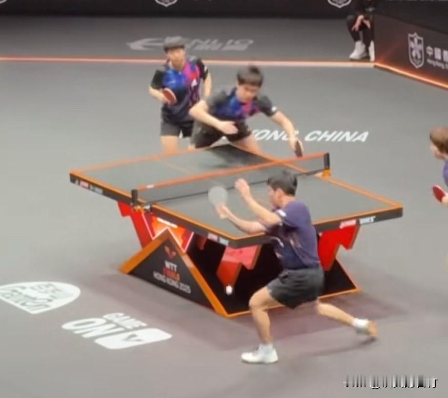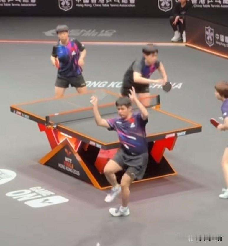 小石头林诗栋被他头哥打的团团转 孙颖莎发球,蒯曼接发球,王楚钦一个正手进攻斜线,打的小石头林诗栋高举双手直转圈。球还是没有接到。 大头王楚钦这时候没有刹住脚步,已经跑到对面蒯曼身边去了。就剩莎莎一个人在。 小石头演绎人在尴尬的时候,转过身去。谁也没看到。哈哈哈[捂脸][捂脸] 小石头真可爱!