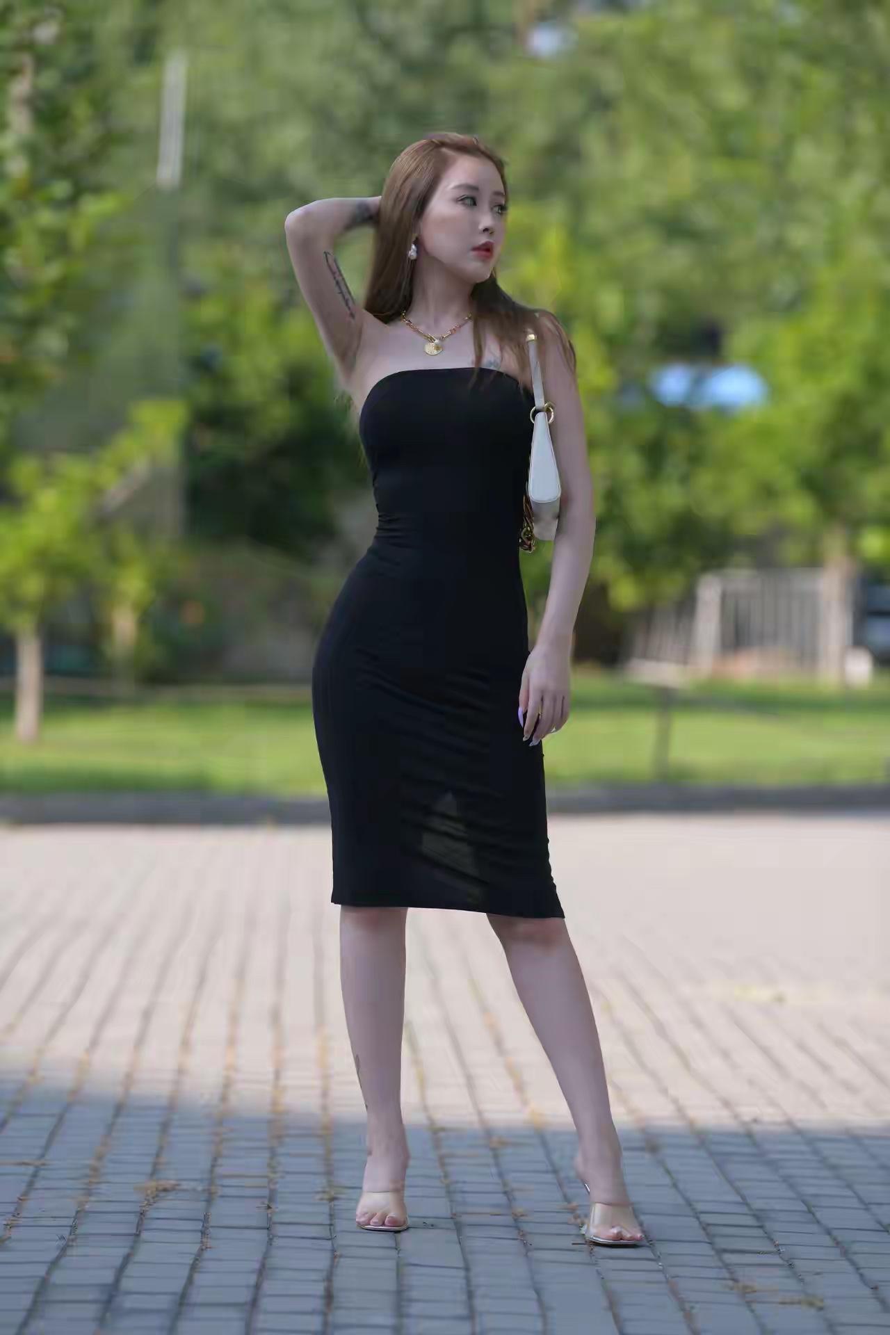 街拍长裙搭配黑色街拍美少女穿搭 街拍穿搭风景线