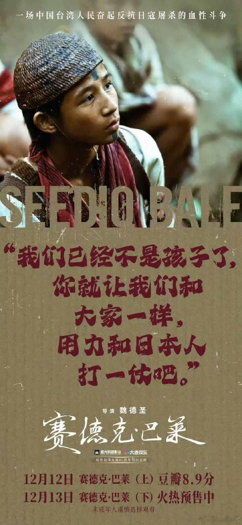 先辈如此硬气你们的膝盖怎敢软 八十年前的中国台湾同胞用行动证明了什么是民族气节。八十年后,完整版的赛德克巴莱让这段历史重焕光彩,提醒我们无论何时都要挺直脊梁。
