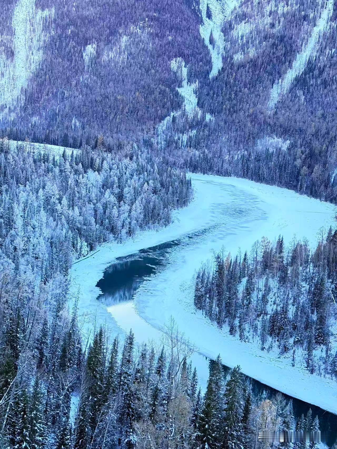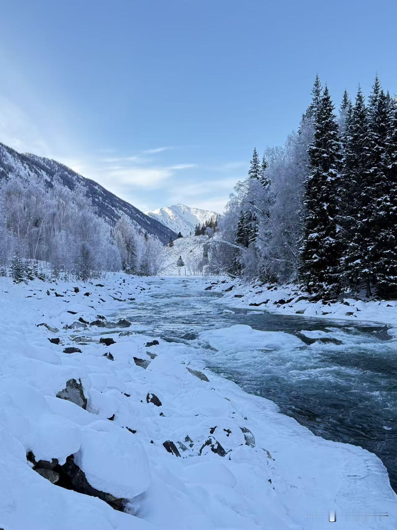 喀纳斯的冬,是一幅流动的水墨丹青 当雪絮漫过山峦,喀纳斯的冬天便晕
