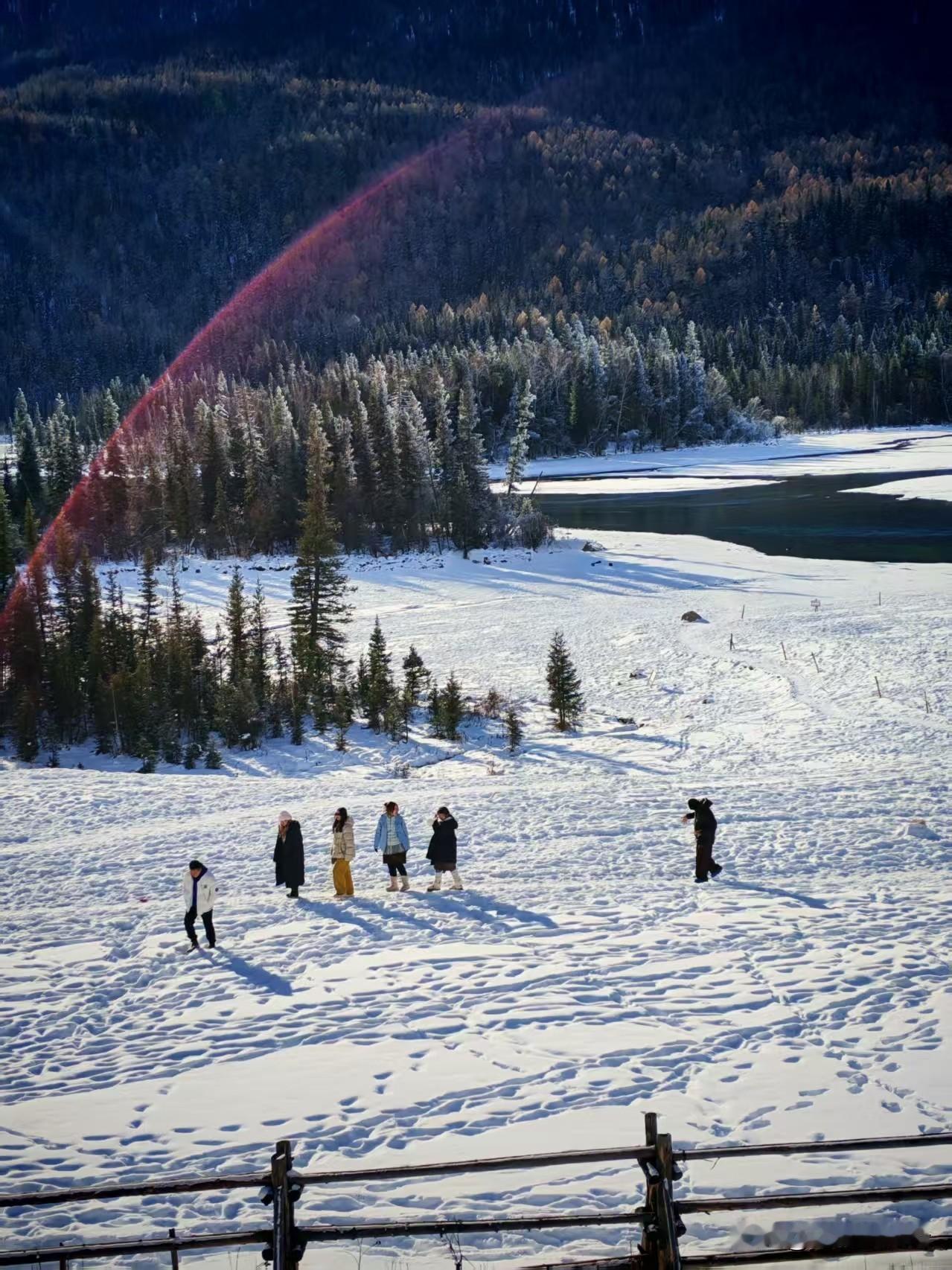 喀纳斯的冬,是一幅流动的水墨丹青 当雪絮漫过山峦,喀纳斯的冬天便晕染成了一幅流动的水墨丹青。皑皑白雪铺满连绵峰峦,晶莹雾凇缀满苍劲枝桠,冰封的湖面如巨大的琉璃镜,将澄澈天光与雪岭云影尽数揽入怀中。 这片不染尘俗的雪域秘境,藏着北疆最纯粹的冬日诗意。我们以精致小团深入雪原,专业领队带你寻迹人少景美的私藏点位,旅拍团队定格你与雾凇、蓝冰同框的惊艳瞬间。不必追赶人潮,只需静立此间,让凛冽清风拂过耳畔,把冬日的浪漫与静谧,妥帖收藏进记忆里。