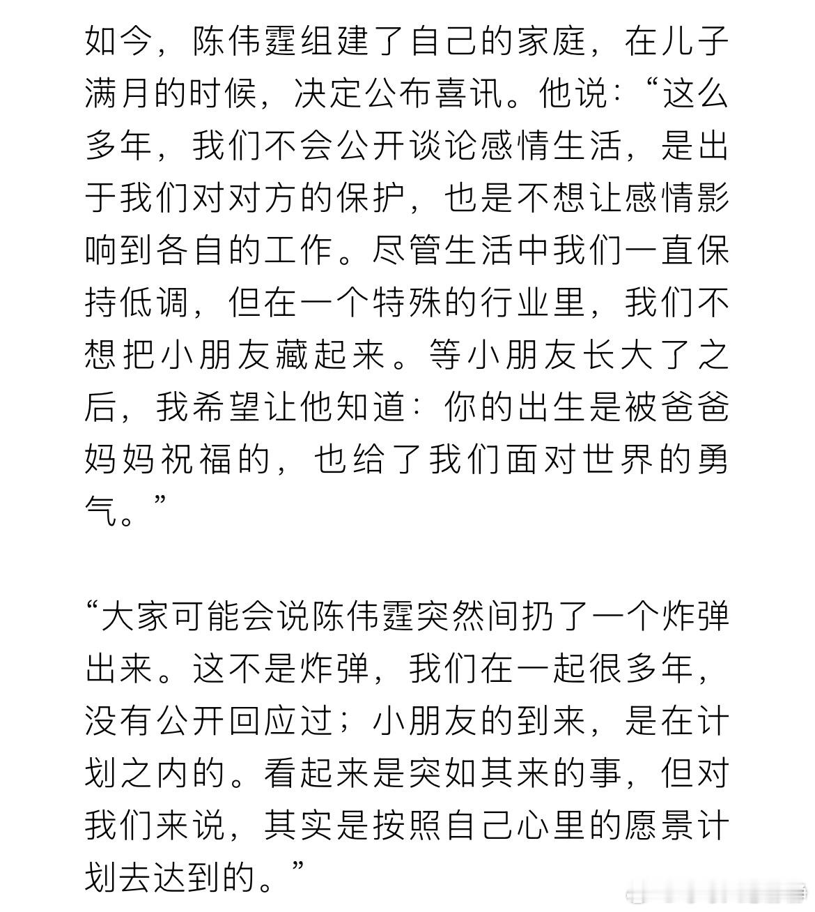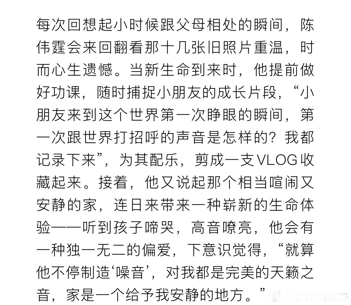 陈伟霆首谈官宣生子原因Family Man:不想公开谈论感情,但不想把小朋友藏起来“我希望让他知道:你的出生是被爸爸妈妈祝福的,也给了我们面对世界的勇气。”陈伟霆vogueman十二月刊封面