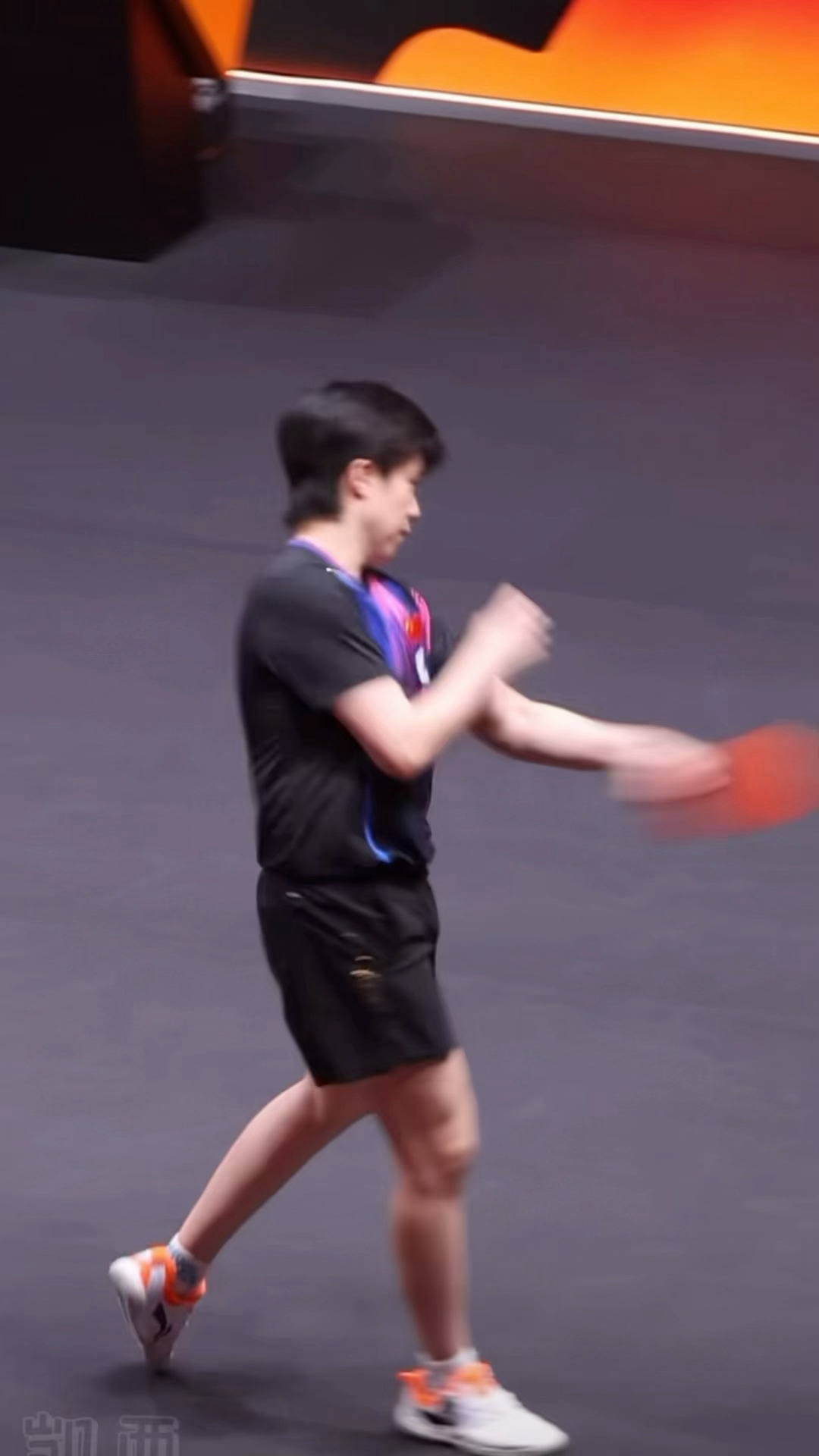 何穗生完孩子后状态更好了!她穿了一身黑色宽松西装,大秀美腿。垫肩设计显得