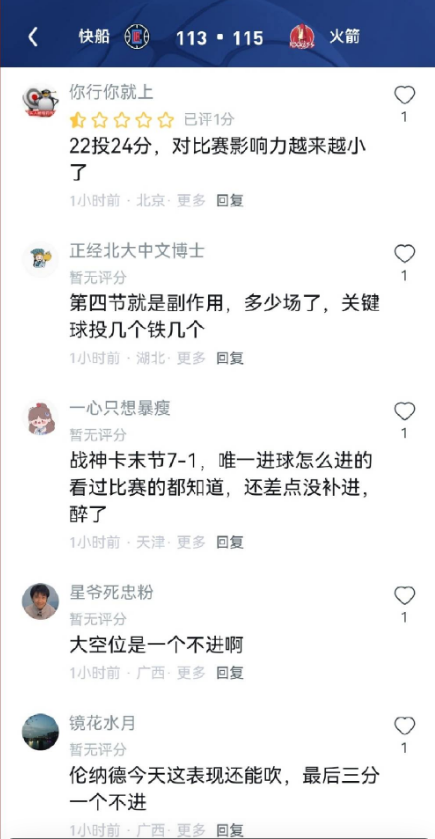 曾orz是 7 2025-12-12 16:58 伦纳德歇够了结果乱打不传球。哈登是打满第三节,第四节还没歇被反超赶紧又上来,你让他哪有体力吗?就强如杜兰特也在划水啊,所以别怪哈登,快船除了哈登没有一个靠得住的!! keep 回复 12-12 18:23 两个都没怎么歇着,一个41分钟,一个40分钟,打毛