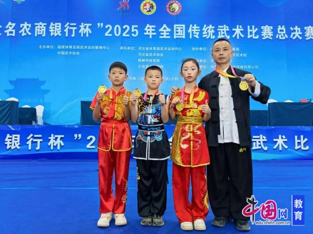 近日,“大名农商银行杯”2025年全国传统武术公开赛总决赛在河北邯郸圆满落幕。江油市长城实验学校师生代表队在本次国家级赛事中表现出色,共斩获8枚金牌,取得优异成绩。