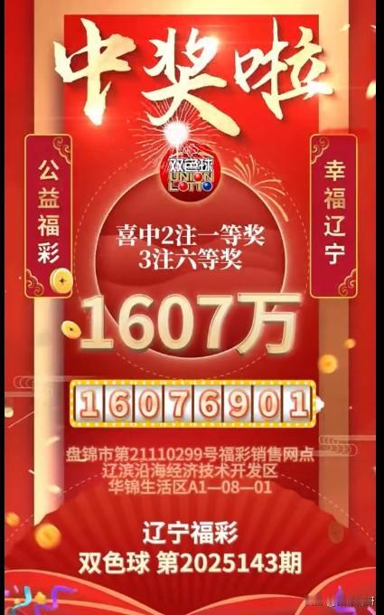 辽宁彩民喜揽1607万巨奖!11日双色球第25143期开奖,全国共中出7注一等奖