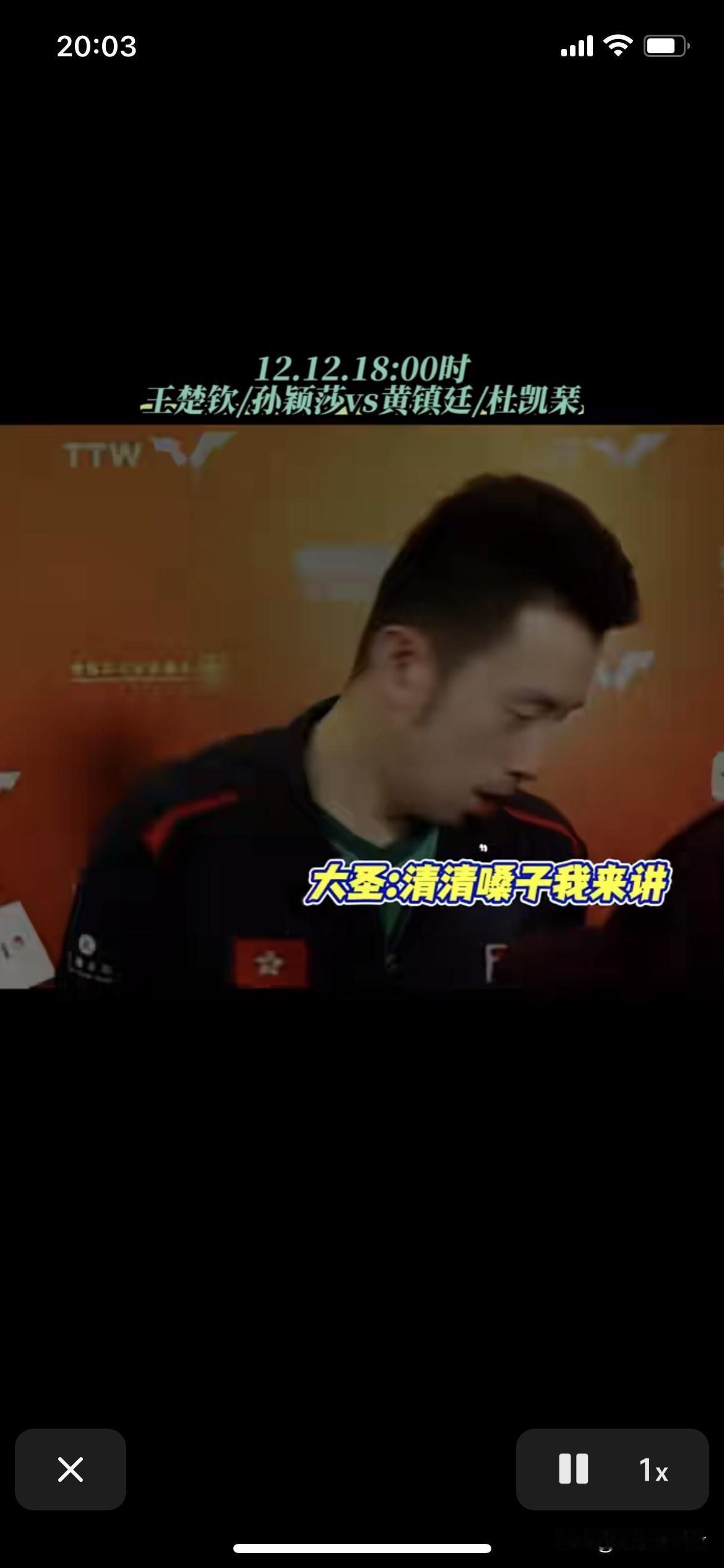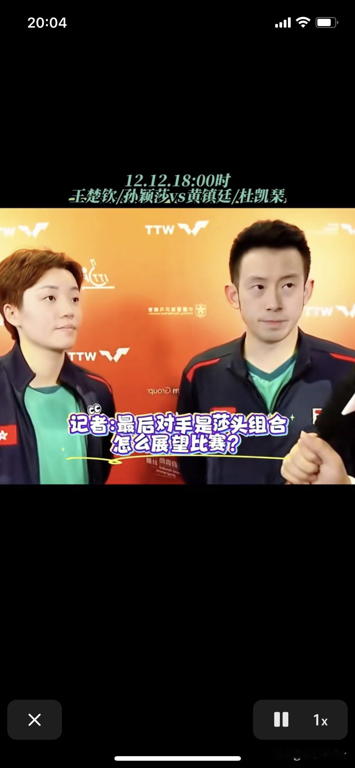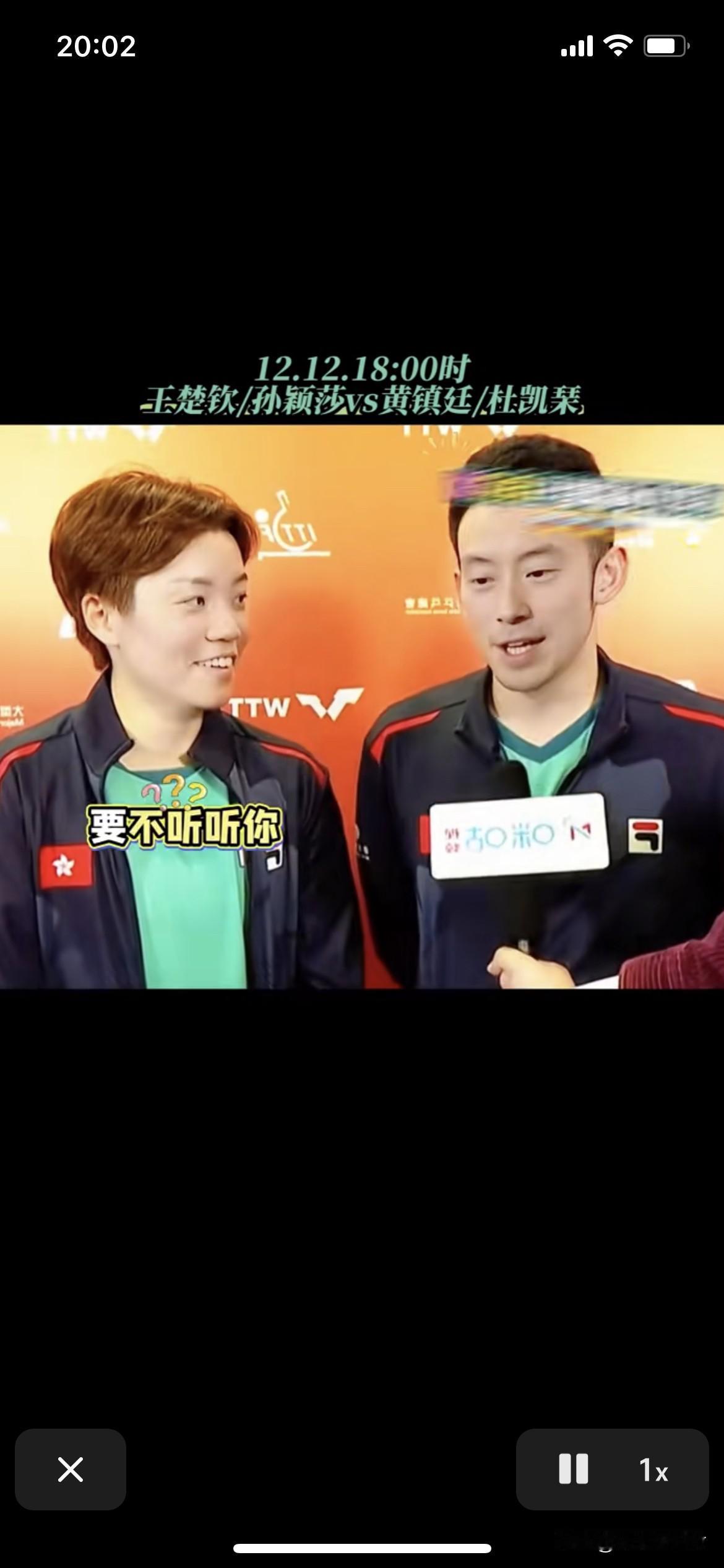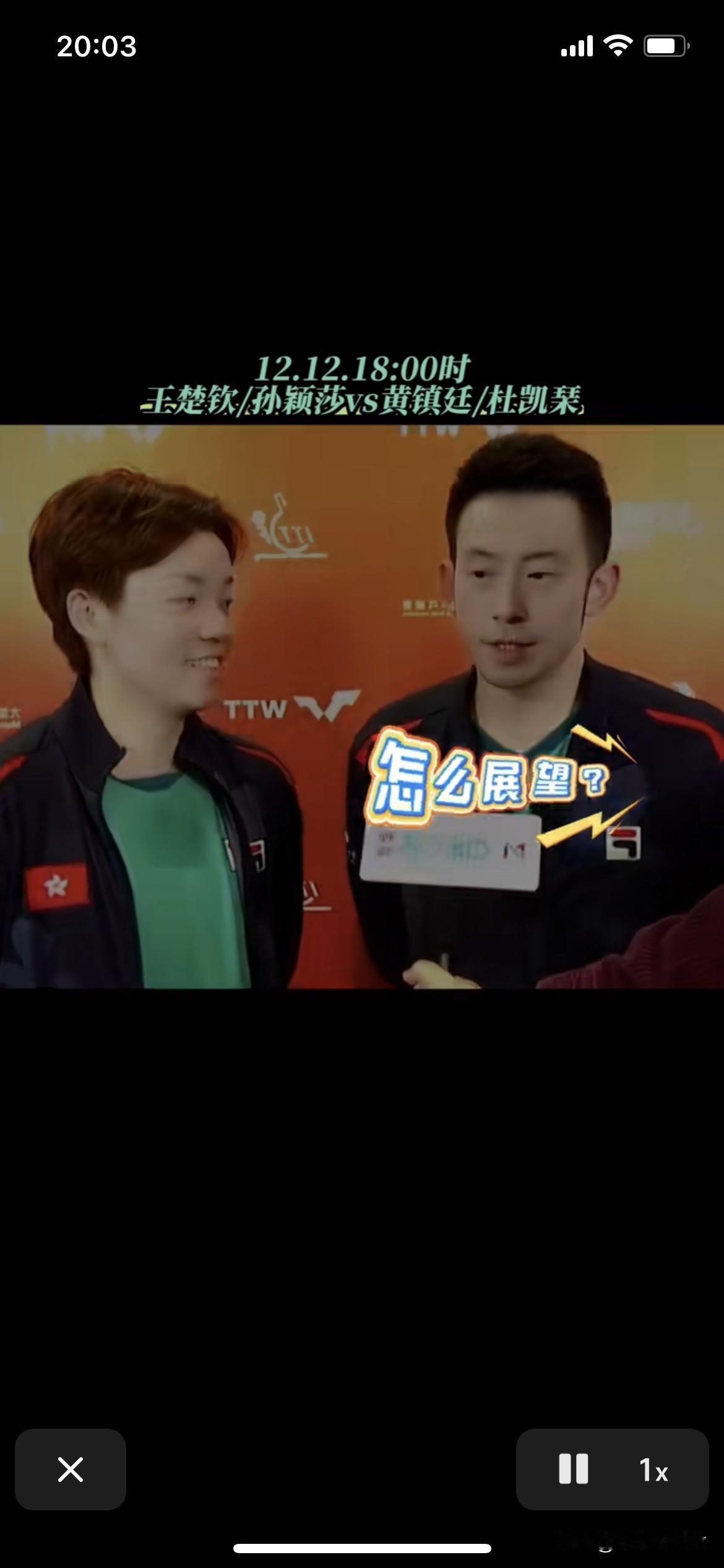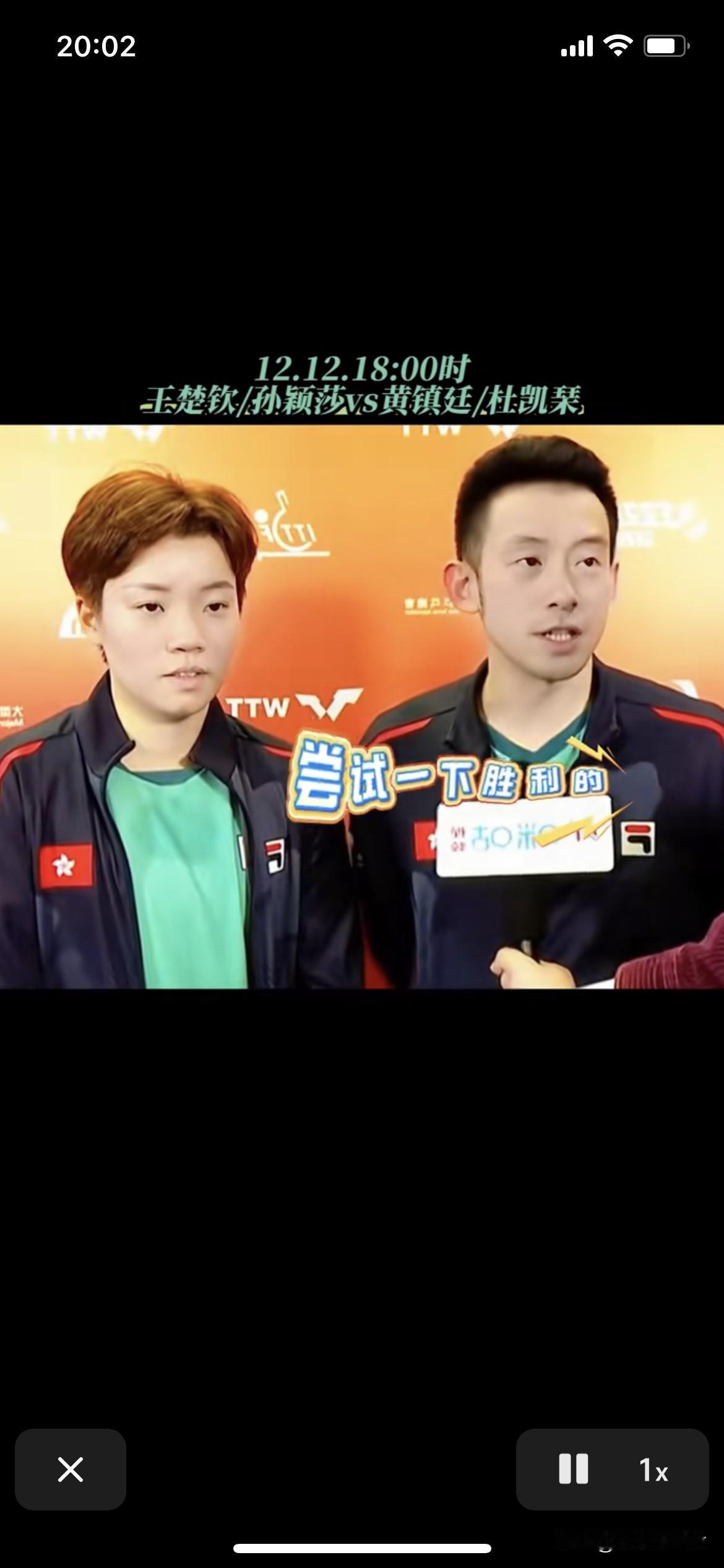 黄镇廷说想尝试一下胜利 黄镇廷杜凯琹在打王楚钦孙颖莎前 记者问:最后对手是莎头组合,怎么展望比赛。 大圣黄镇廷说:怎么展望,就想尝试一下胜利。 黄镇廷杜凯琹差点就展望成功了,看得我这惊心动魄。不过还是差那么一点点。 高端局打多了是真的可以涨球呀,港队今晚打的是真不错,好多个漂亮球确实,第四局打个11比1[赞] 大圣真的拼了[捂脸]杜凯琴很知道怎么打,打的都是大角度。[捂脸]黄镇廷杜凯琹准备很充分的。