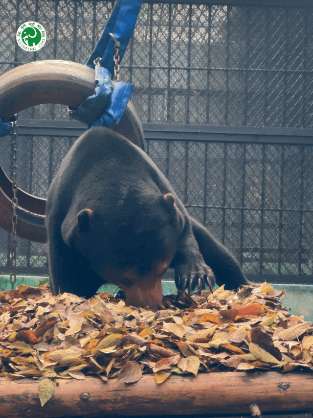 昆明动物园的落叶里,“长”出了豹子、马来熊和小浣熊