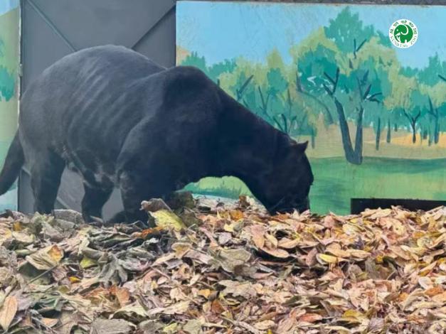 冬日里落叶还有个隐藏优势——保暖缓冲。昆明的早晚温差大,铺在活动区的落叶层就像天然软垫。美洲豹会兴奋地在落叶上打滚,厚实的叶片能缓冲身体,也让它们重温野外隐藏身形的本能,趴在上面休息时,这些落叶还能隔绝地面的寒气。