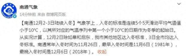 气象学上的入冬,并非单看某一天气温高低,而是以连续5个5天滑动平均气温低于10℃作为判定标准。简单来说,是以5天为一组计算日平均气温,当连续5组这样的滑动平均值均稳定低于10℃,即可认定入冬,并以该气温序列中第一个低于10℃的日期作为冬季的起始日。这也意味着,从大家体感转冷到气象部门官宣入冬,中间需要一段观测与计算的时间,以确保季节转换判定的准确性。