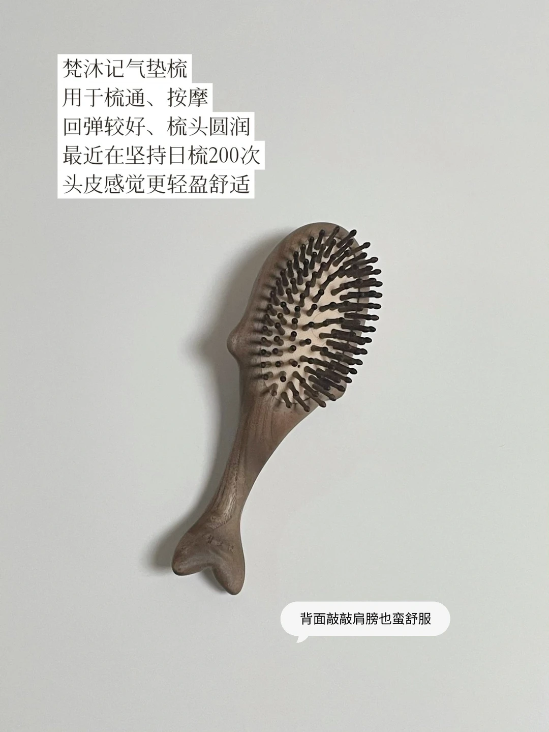梳通、按摩。选择回弹较好、梳头圆润的气垫梳,多疏通、按摩头皮,头皮更轻盈舒适。