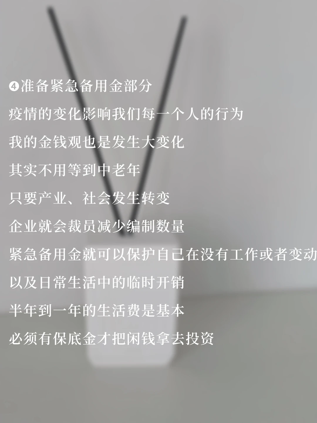 紧急备用金就可以保护自己在没有工作或者变动时能保持温饱