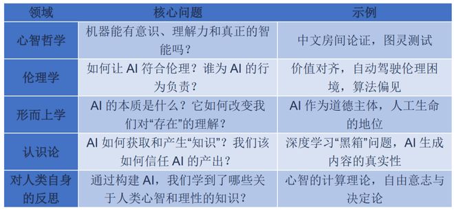 下面这个列表也对AI哲学的核心议题进行了总结: