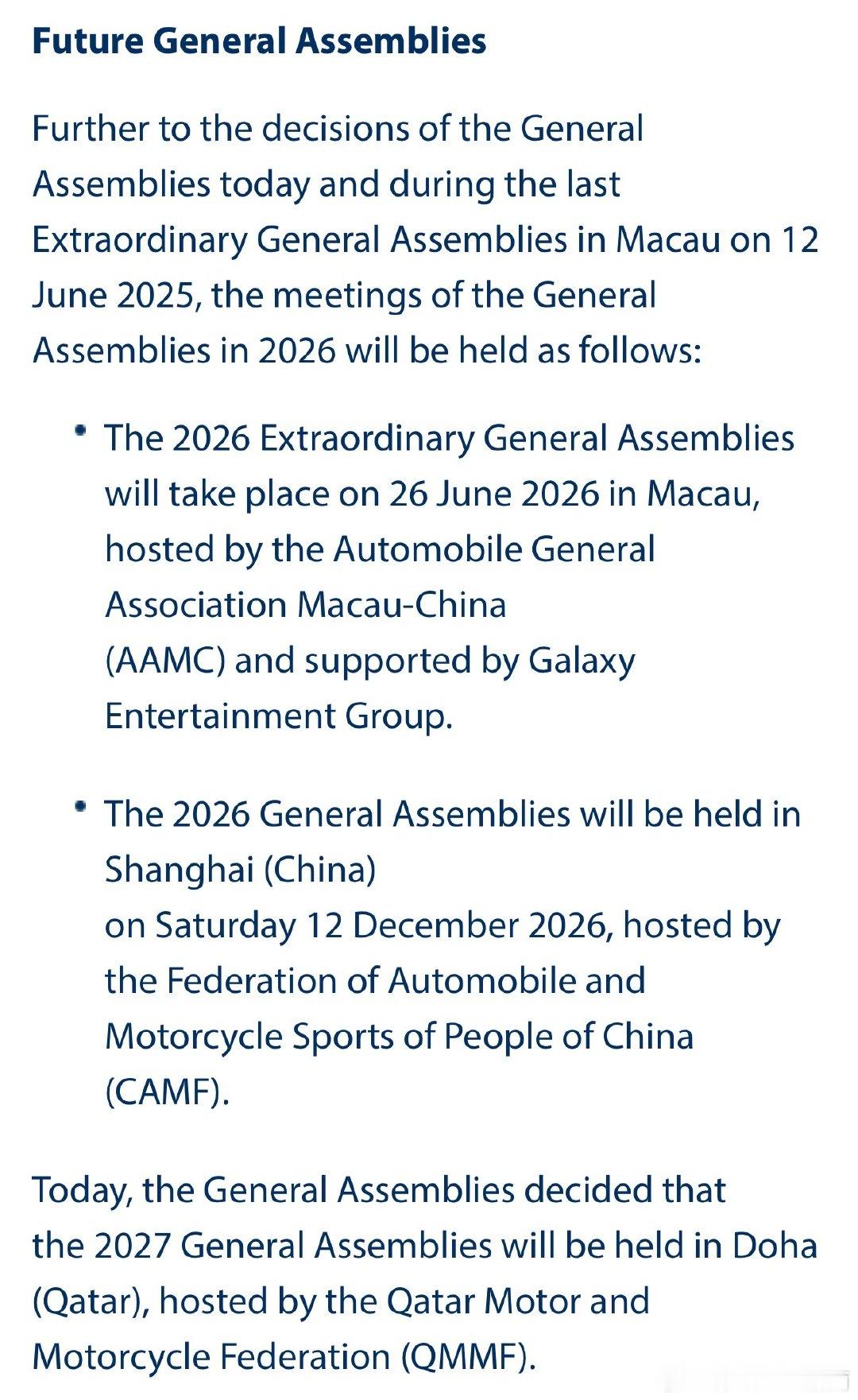 2026年FIA年度大会将于明年12月12日在中国上海举办! cr:刘耀_FL