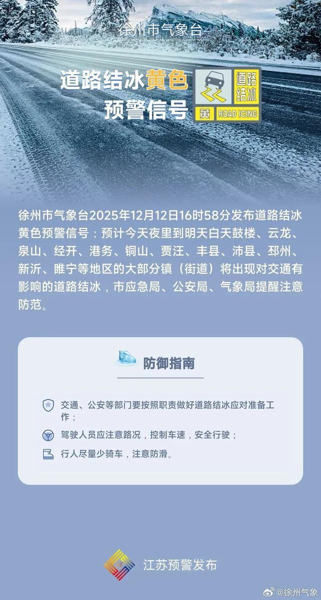 道路结冰黄色预警信号