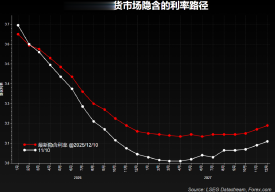 ·利率期货市场仍预计明年降息两次,但时间点可能推迟至下半年,隐含的利率曲线相比于一个月前更为鹰派