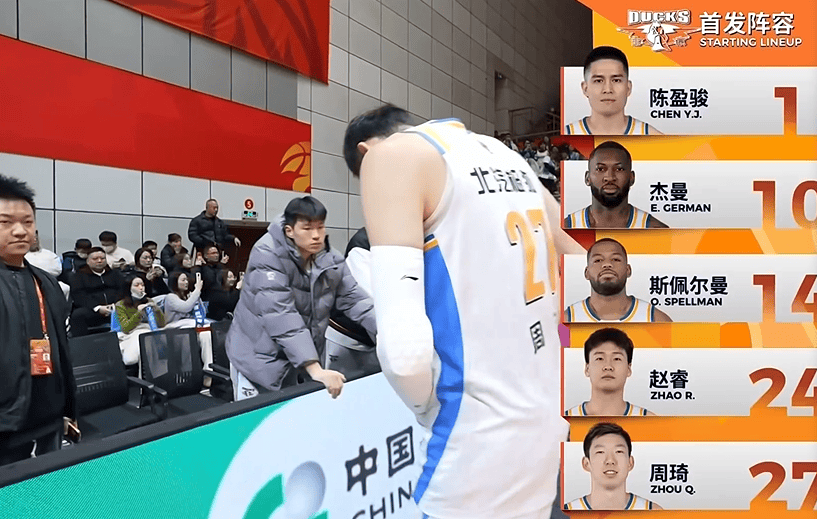 赛前,北京男篮首发出炉:陈盈骏、赵睿、杰曼、斯佩尔曼、周琦。