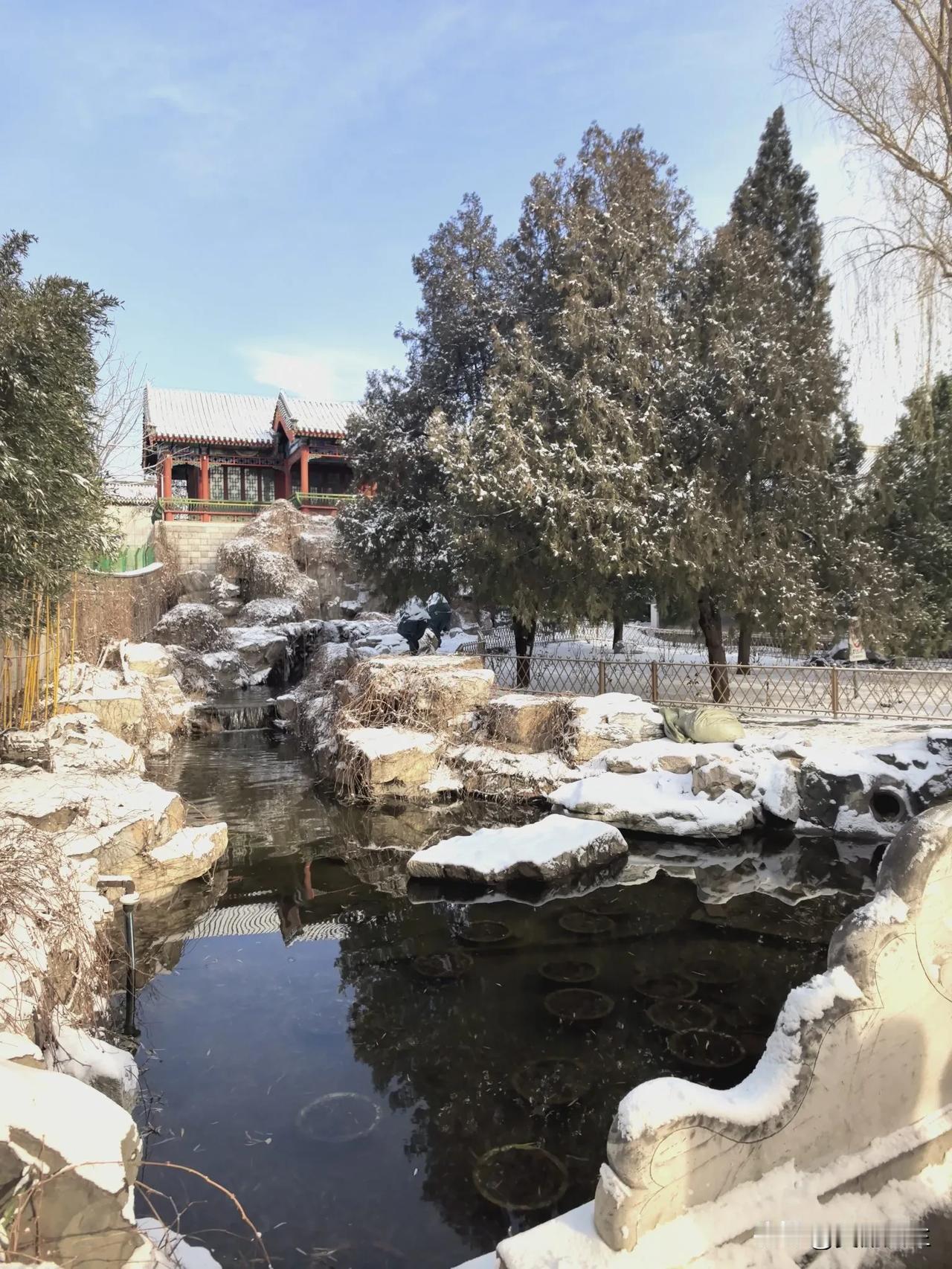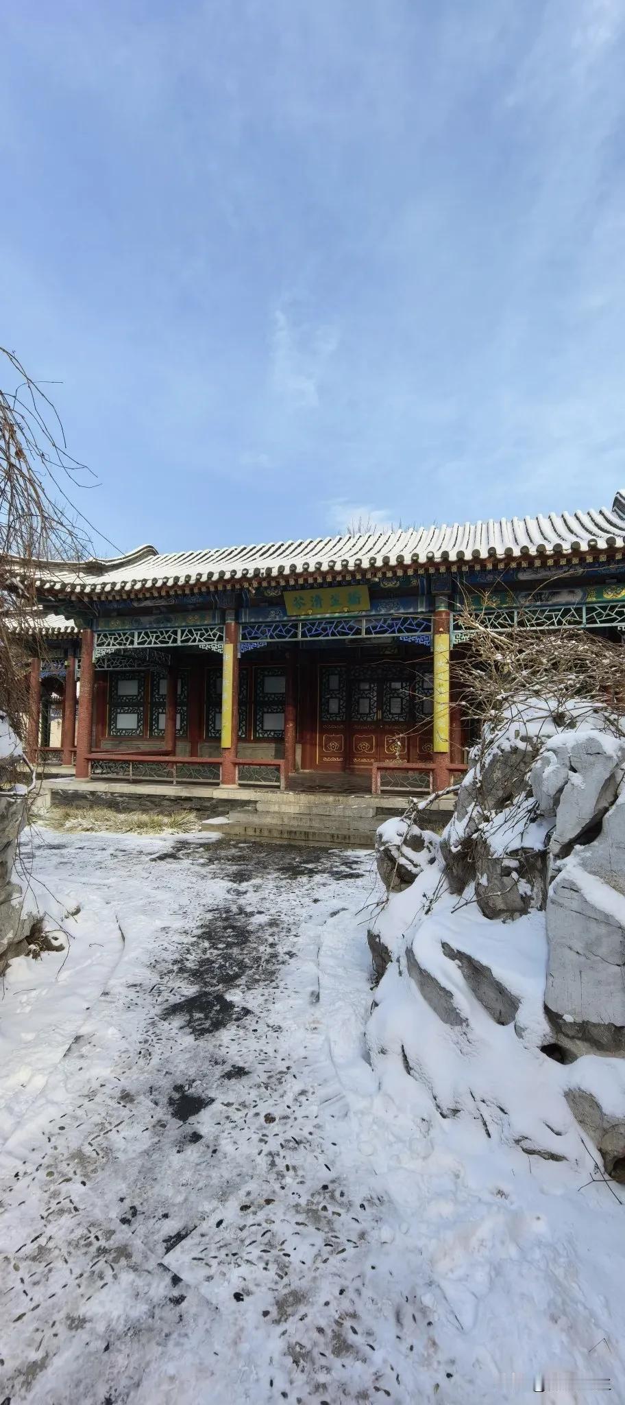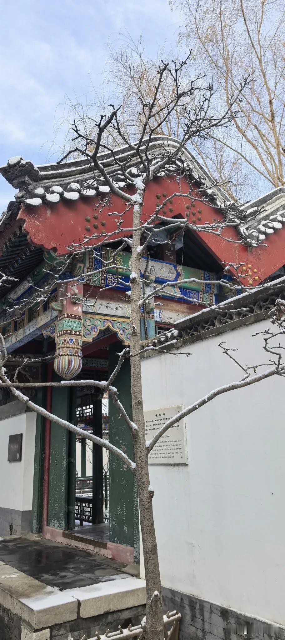 大观园初雪一隅 2025年第一场雪, 比以往时候来的晚了一些