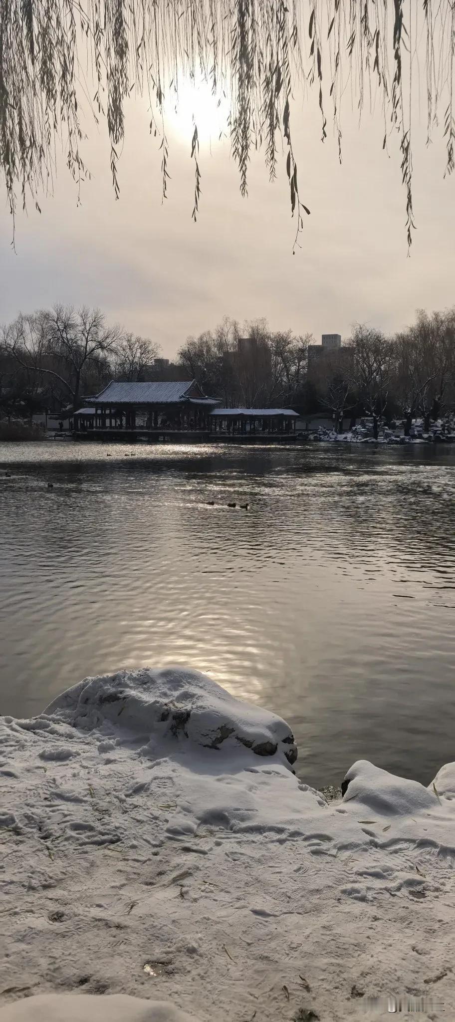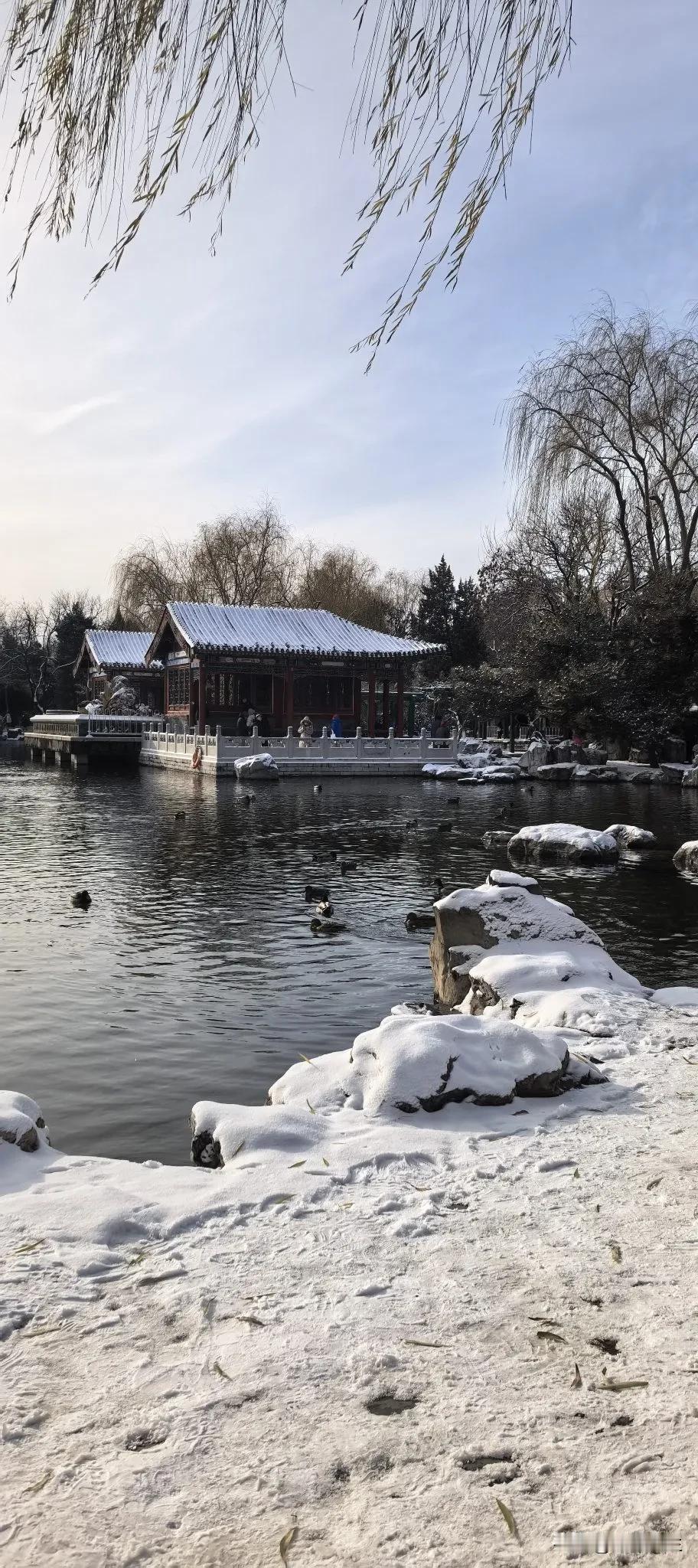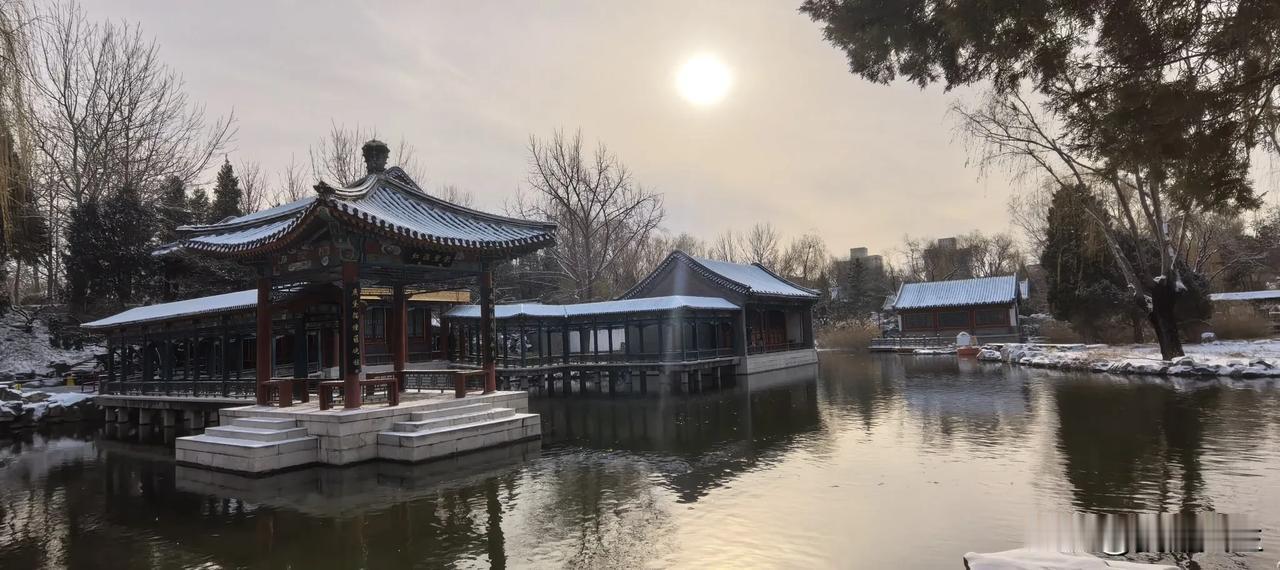 大观园初雪一隅 2025年第一场雪, 比以往时候来的晚了一些