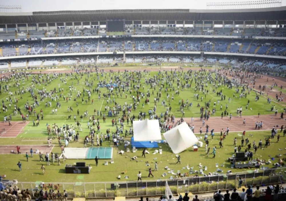 梅西印度行闹剧收场【印度球迷暴怒!不满梅西只待10分钟+被团团围住 千人冲下看台砸场】印度球迷不满梅西只待10分钟暴怒砸场12月13日,梅西开启印度行。当天下午,梅西来到当地的盐湖体育场,与现场的球员及球迷互动。由于组织混乱,球迷并没有与梅西进行近距离的接触,这让他们很愤怒并做出了出格的行为。今日凌晨,梅西抵达印度。在进行了简单的休息之后,梅西便开始了繁忙的各种活动。早晨,他给当地临时完工的梅西雕像揭幕,引起阵阵欢呼。随后,他出现在可以容纳8.5万人的盐湖体育场。按照计划,这座球场今日要举办一场友谊赛以及相应的活动,梅西被安排在赛前与球员及球迷互动。当梅西出现在球场的时候,整个球场陷入了沸腾。梅西在球场中央与球员们互动,并给他们签名。不过,主办方并没有让梅西绕场与球迷互动。整个过程中,梅西基本都是站在球场中央,而且身边围着多个工作人员、政府官员以及官员的家属。看台上的球迷几乎看不到梅西本人,这让他们在看台上很着急。大概待了10分钟后,梅西就被主办方安排离开了球场。当梅西离开后,失望的球迷彻底怒了。他们先是向球场内投掷水瓶,随后直接把椅子给扔了下来。这还不过瘾,有大约上千名球迷冲下看台,来到了场地上。这些球迷对体育场的设施进行了严重的破坏,有人掀翻了休息棚并拿棍子狠砸,有人在场内大声怒喊发泄对主办方以及梅西的不满。截止到目前,印度的主办方都没有对此事做出对应的正面回应。