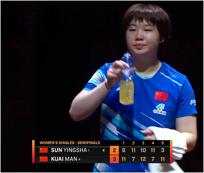 孙颖莎2比3蒯曼后伤退,蒯曼晋级香港总决赛女单决赛。那么随后的混双决赛,不知道莎莎还能不能打,如果打不了的话,韩国的林钟勋/申裕斌将获得混双冠军。 孙颖莎这站比赛参加了女单、混双两个项目,赛程安排过于紧凑,对球员的消耗确实是比较大。