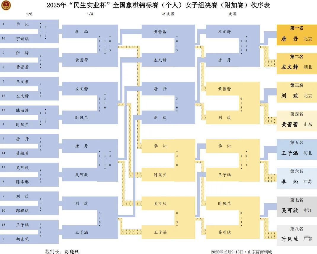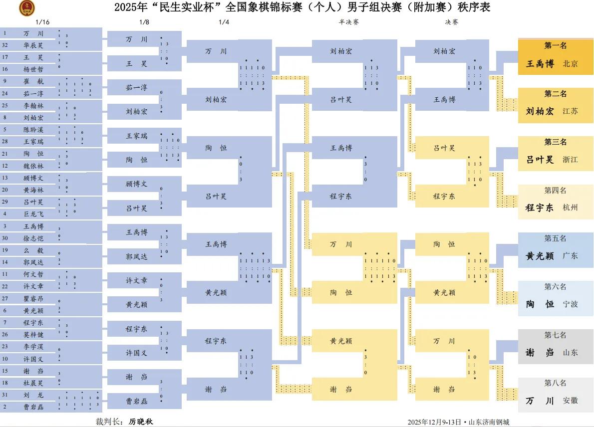2025年全国象棋个人赛落下帷幕,最终王禹博、唐丹分获男女组冠军。王禹博首次获得全国个人赛冠军,唐丹则成就十冠王伟业,也是女子棋手中唯一一位全国个人赛夺冠次数上双的棋手。 男子组中王禹博与刘柏宏加赛到超快棋才分出胜负,王禹博先手取胜,刘柏宏获得亚军,吕叶昊获得季军,程宇东获得殿军! 女子组中唐丹与左文静在加赛快棋中分出的胜负,加赛快棋中左文静本来占据场面优势与时间优势,但是行至中后盘左文静过度求稳,反而丢掉了优势局面,逐渐陷入被动,最终被唐丹拿下对局,而左文静获得了亚军,刘欢获得季军,黄蕾蕾获得殿军!