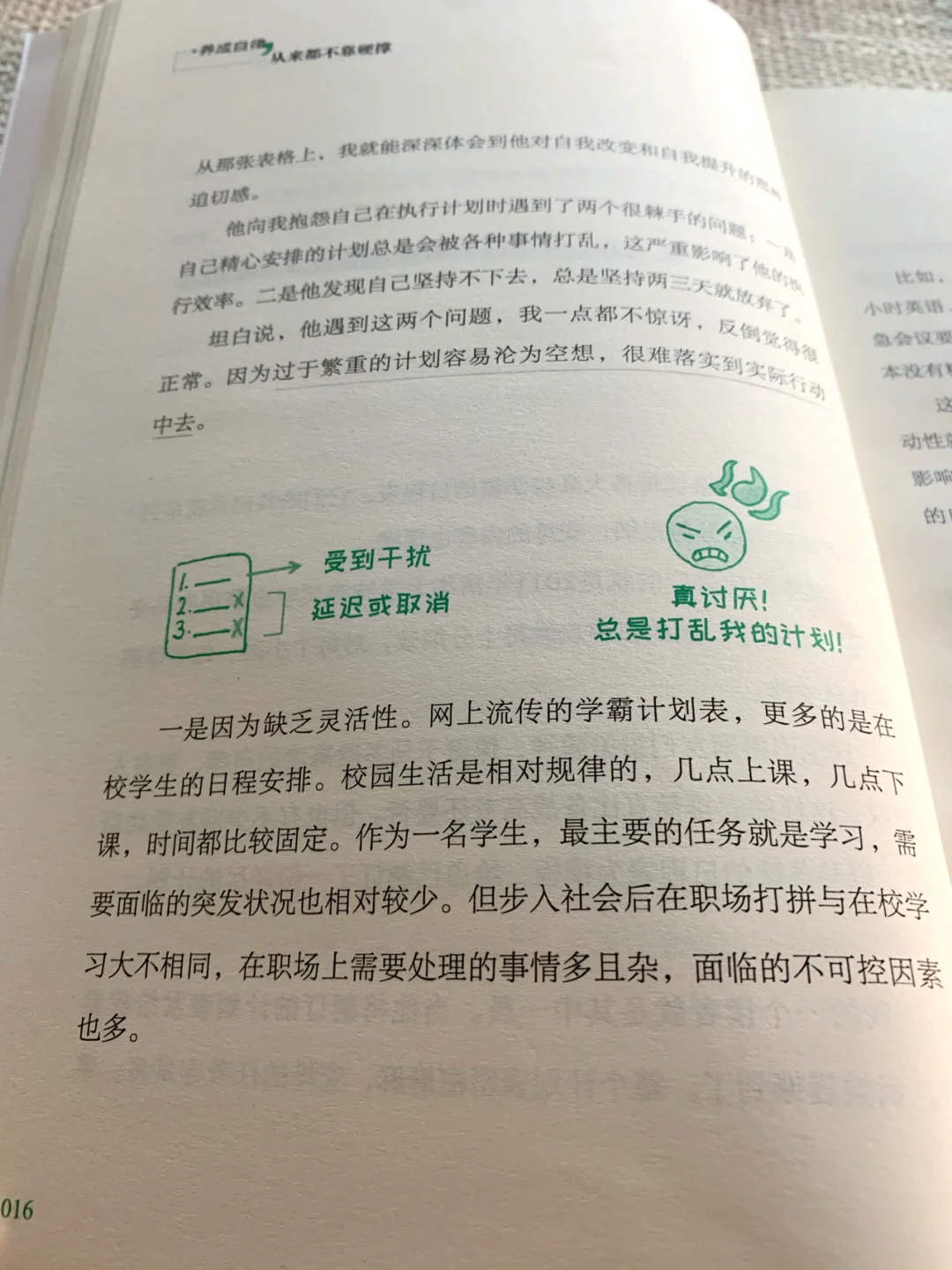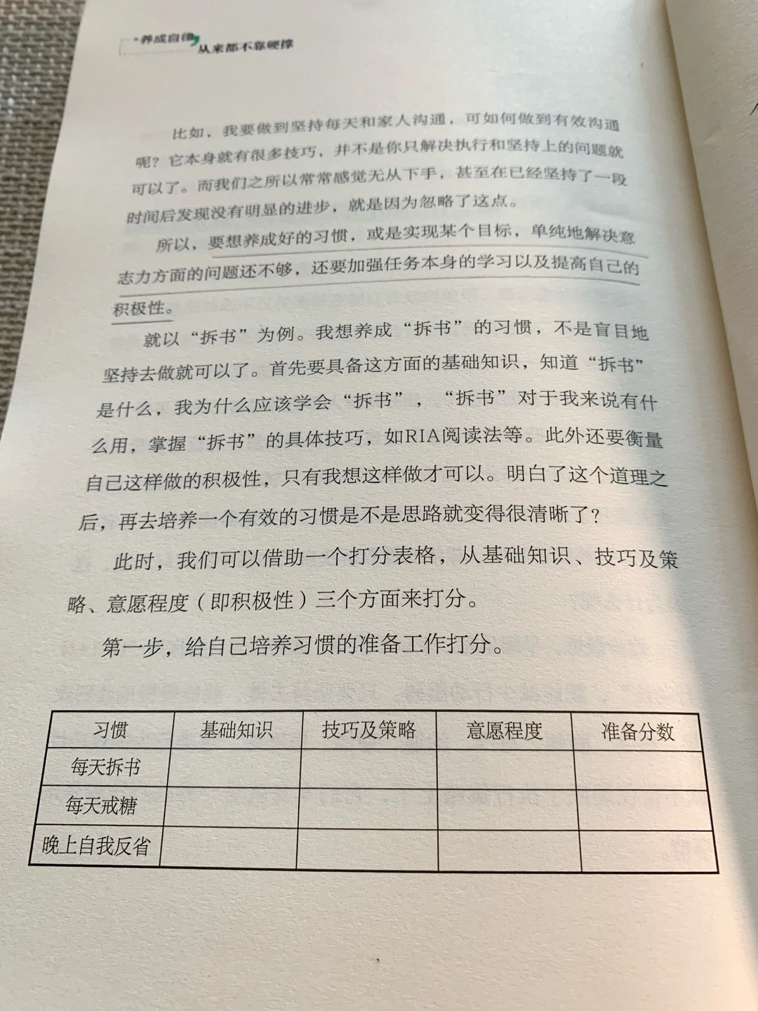 2. 过于繁重的计划容易沦为空想,很难落实到实际行动中去。可以通过技巧的训练,让自己变得越来越自律。
