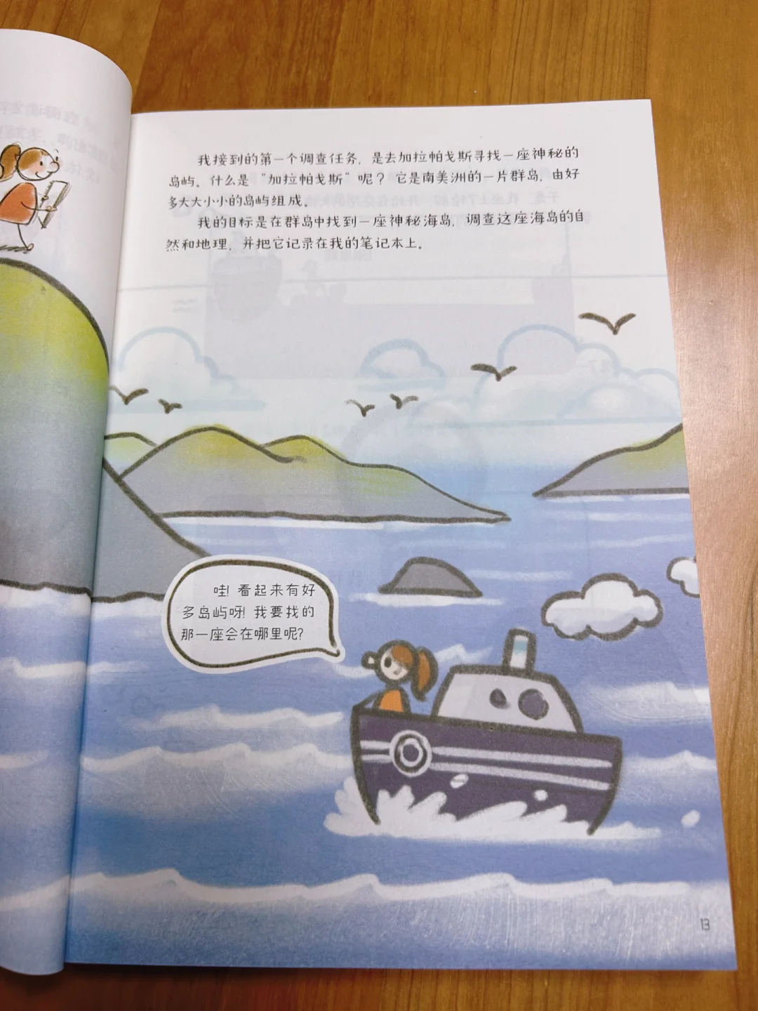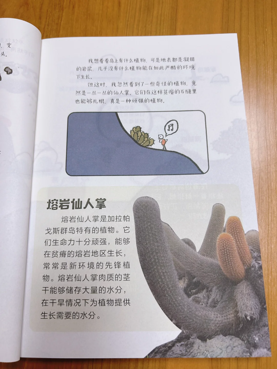 📖三内容分享:神秘海岛调查笔记里,我们走进一座神秘海岛,发现很多黑色的玄武岩,由此推测出这里曾经火山喷发。利用透视法,将火山内部结构画下来,更好研究火山。接着又发现了各种动植物,如熔岩仙人掌、加州企鹅等,由此制作出了一幅完整的视觉笔记图。在这里,我们学会了运用透视法,立体的展现事物全景。当然,还要加以训练,做橙子和房间的调查笔记。学会调查方法很重要。