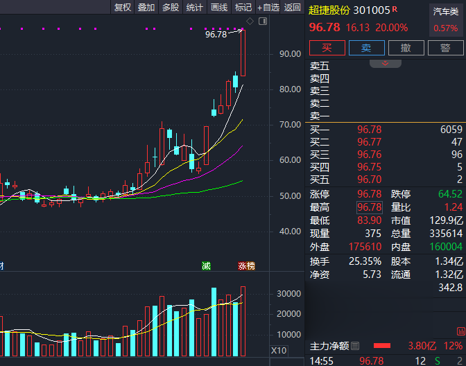 新晋商业航天概念龙头股超捷股份(301005)近期股价频频创出历史新高,本周累计涨幅超39%,仅次于航天动力,位居商业航天概念涨幅榜第二位。目前,除已合作的几家头部民营火箭企业外,超捷股份正积极拓展商业航天领域的其他潜在客户,并已取得实质性进展,成功获取了新客户的订单。结合当前行业快速发展态势及公司客户开发节奏,预计将于明年一季度起陆续有新客户进入批量合作阶段,并签署新的订单。