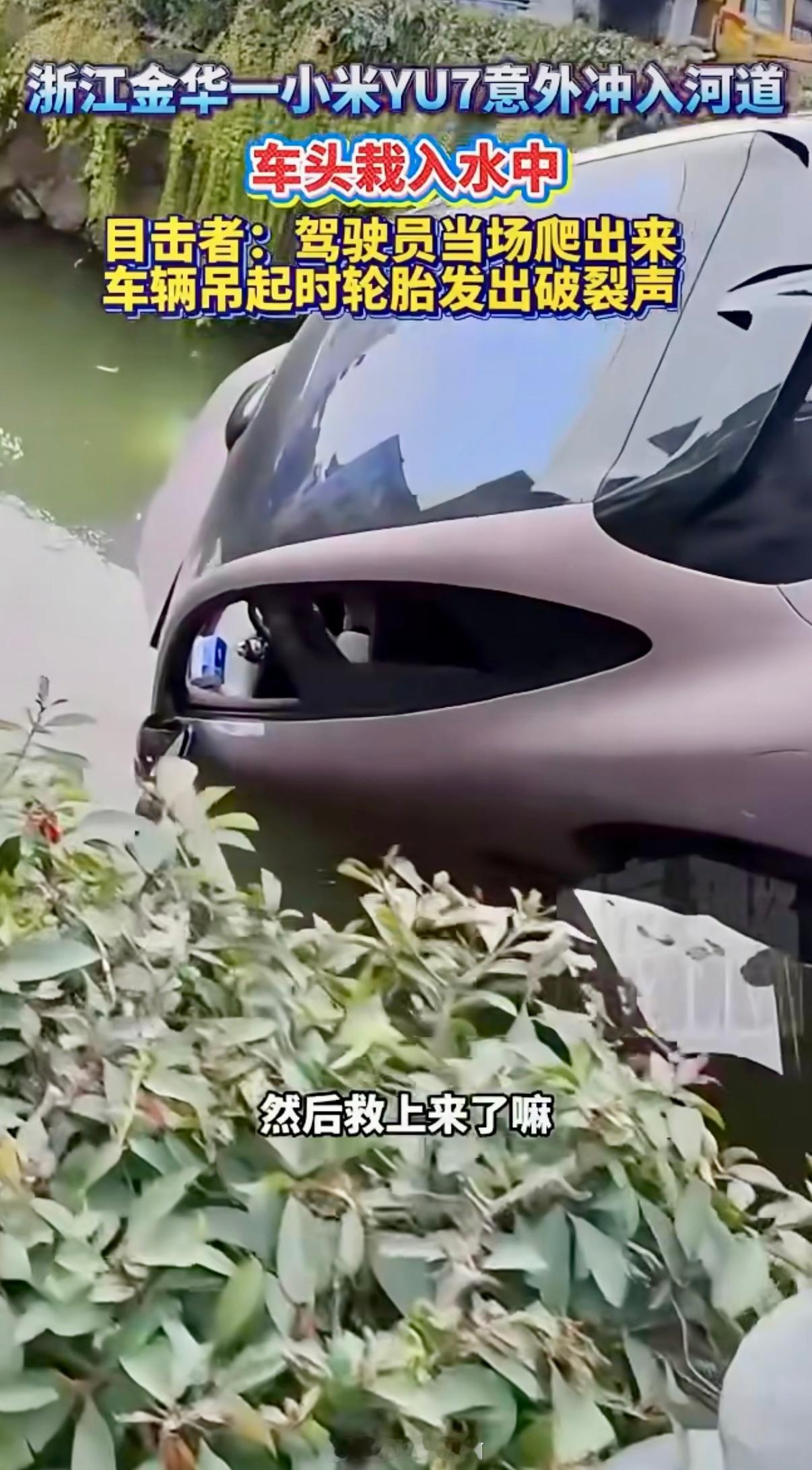 浙江省金华市永康市江南街道下皇渡村,一辆小米SUV突然失控,一头扎进路边河道,车