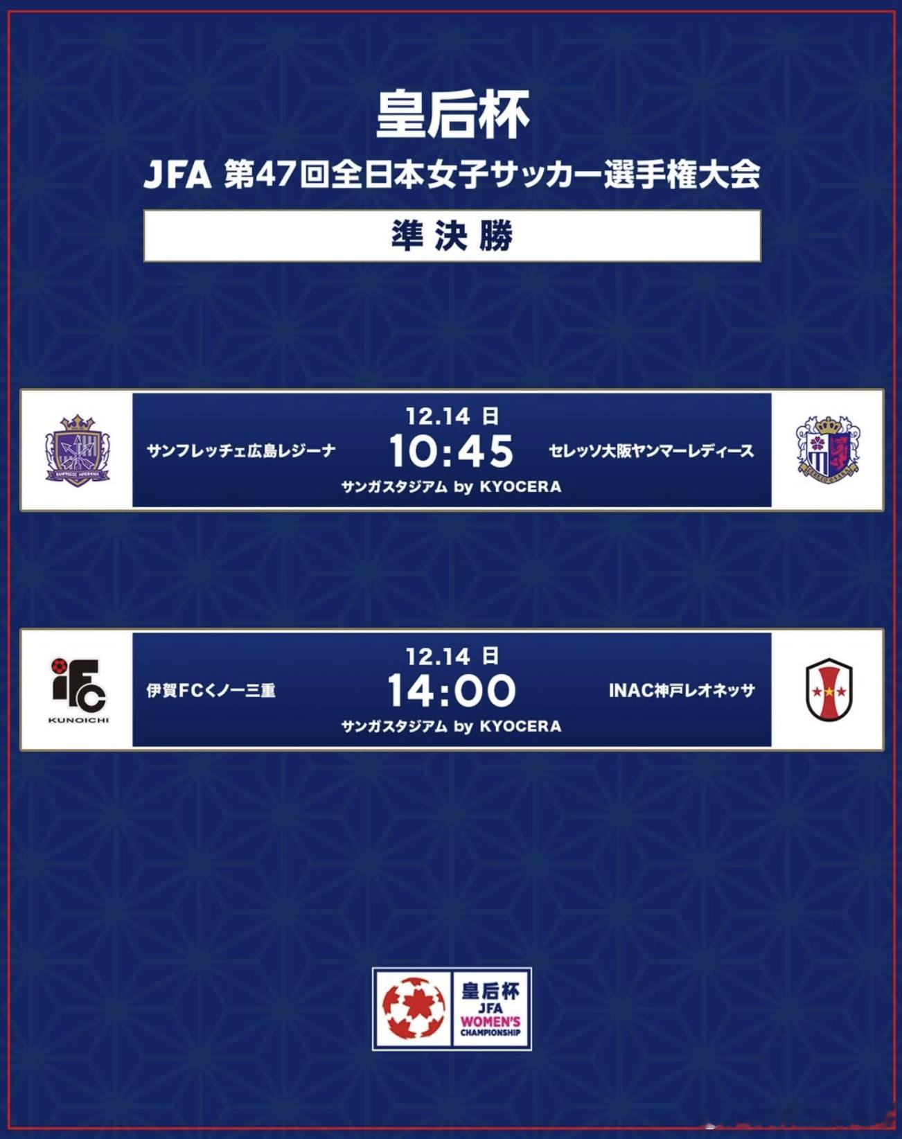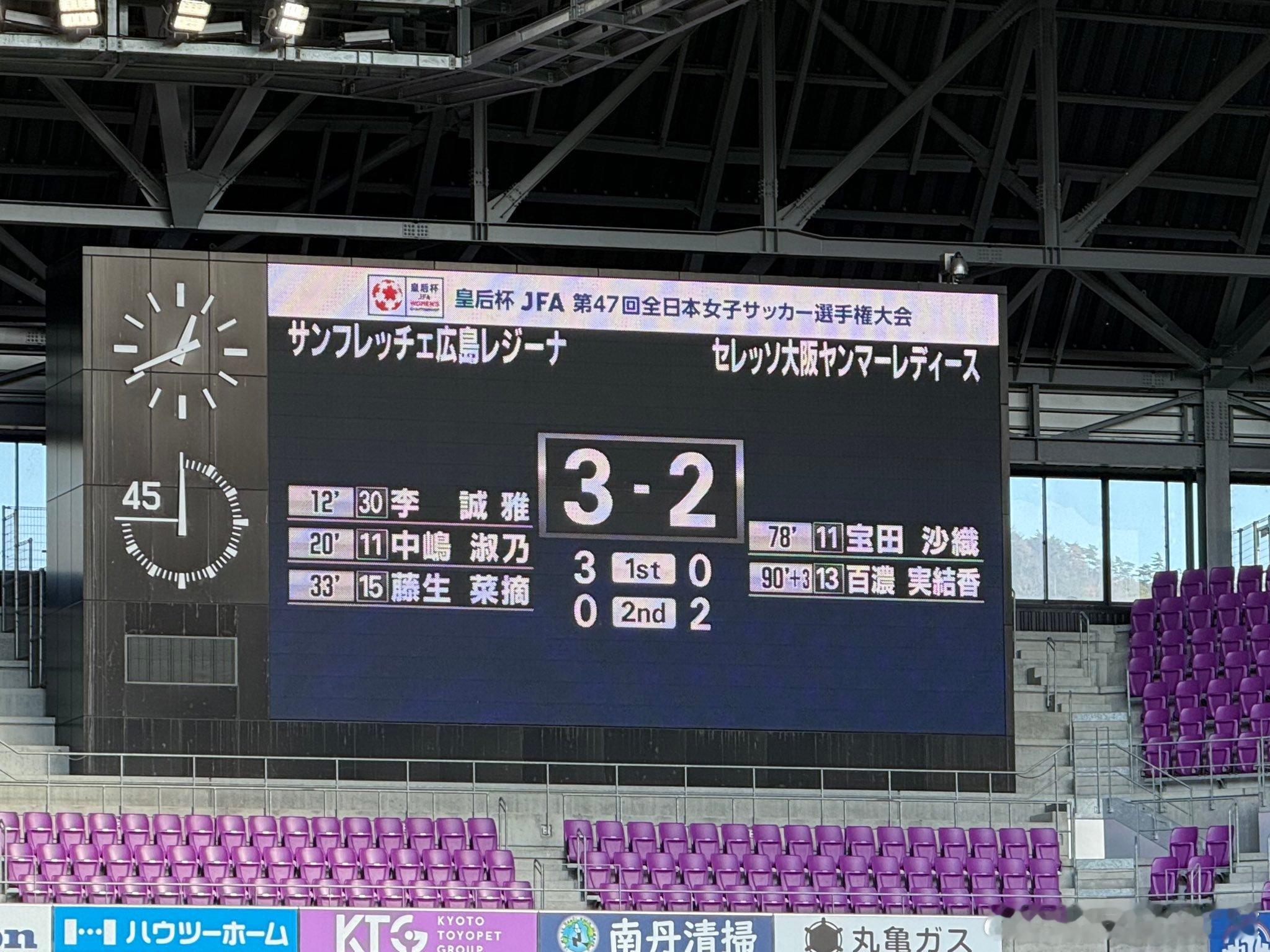 皇后杯半决赛首场|Sanfrecce広島REGINA 3-1 Cerezo 大阪Yanmar Ladies⚽️得点者:12分 李誠雅(広島)20分 中嶋淑乃 (広島)33分 藤生菜摘(広島)78分 宝田沙織(大阪)90+3分 百濃実結香 (大阪)