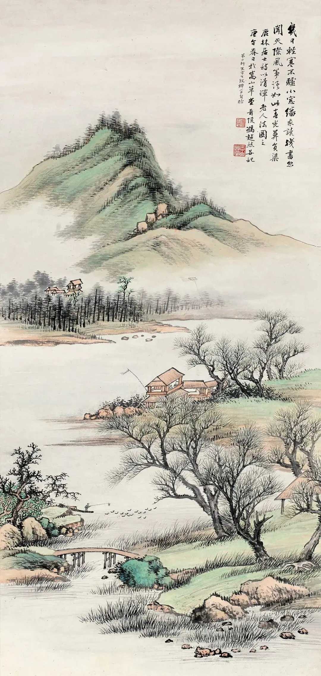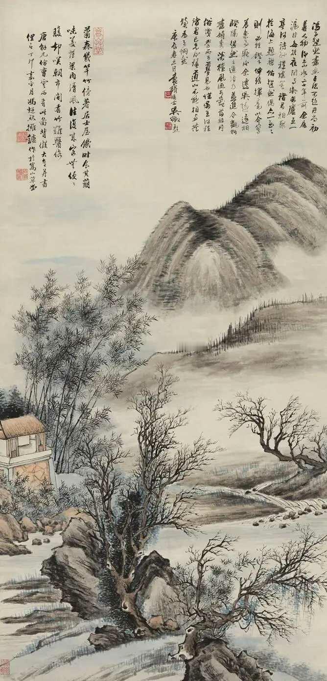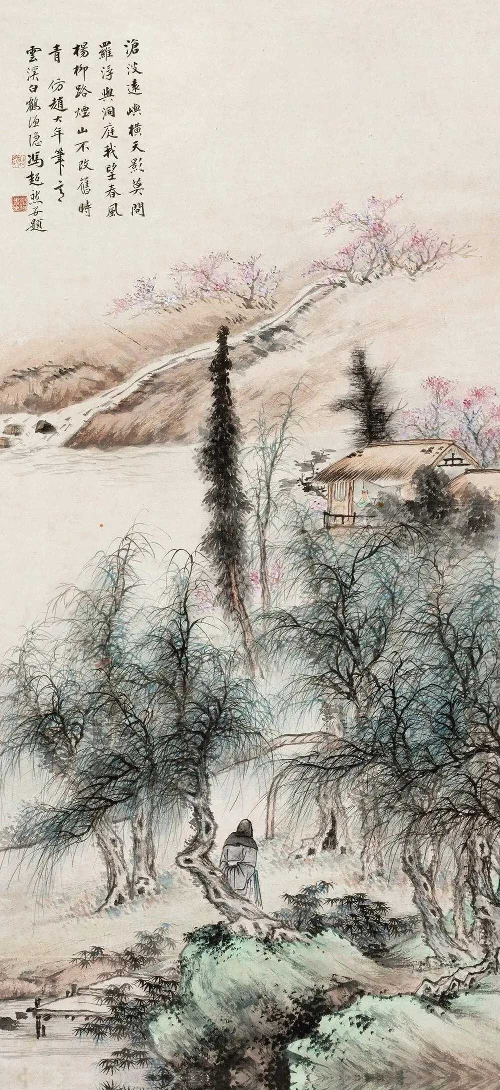 冯超然(1882-1954) ,名迥,字超然,以字行,号涤舸,别署嵩山居士,晚号慎得,原籍江苏常州,生于松江。辛亥革命后来沪,居嵩山路,卖画为生,别署嵩山居士,室名嵩山草堂。技宗唐寅、仇英。人物、山水、花卉均长,晚年专绘山水,有文徵明之秀逸。他主张"笔笔有交代"的传统技法,坚守中国画笔墨精神。与吴湖帆、吴待秋、赵叔孺并称“海上四家”,与吴湖帆、吴待秋、吴子深在上海画坛有“三吴一冯”之称。这就是中国风遇见艺术