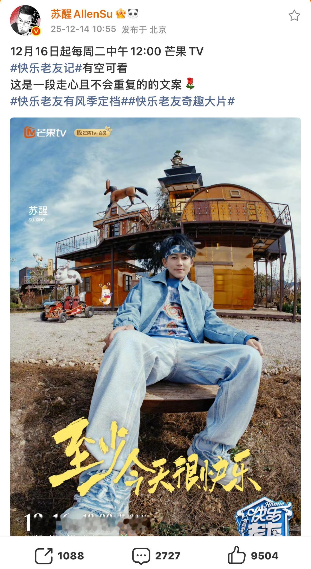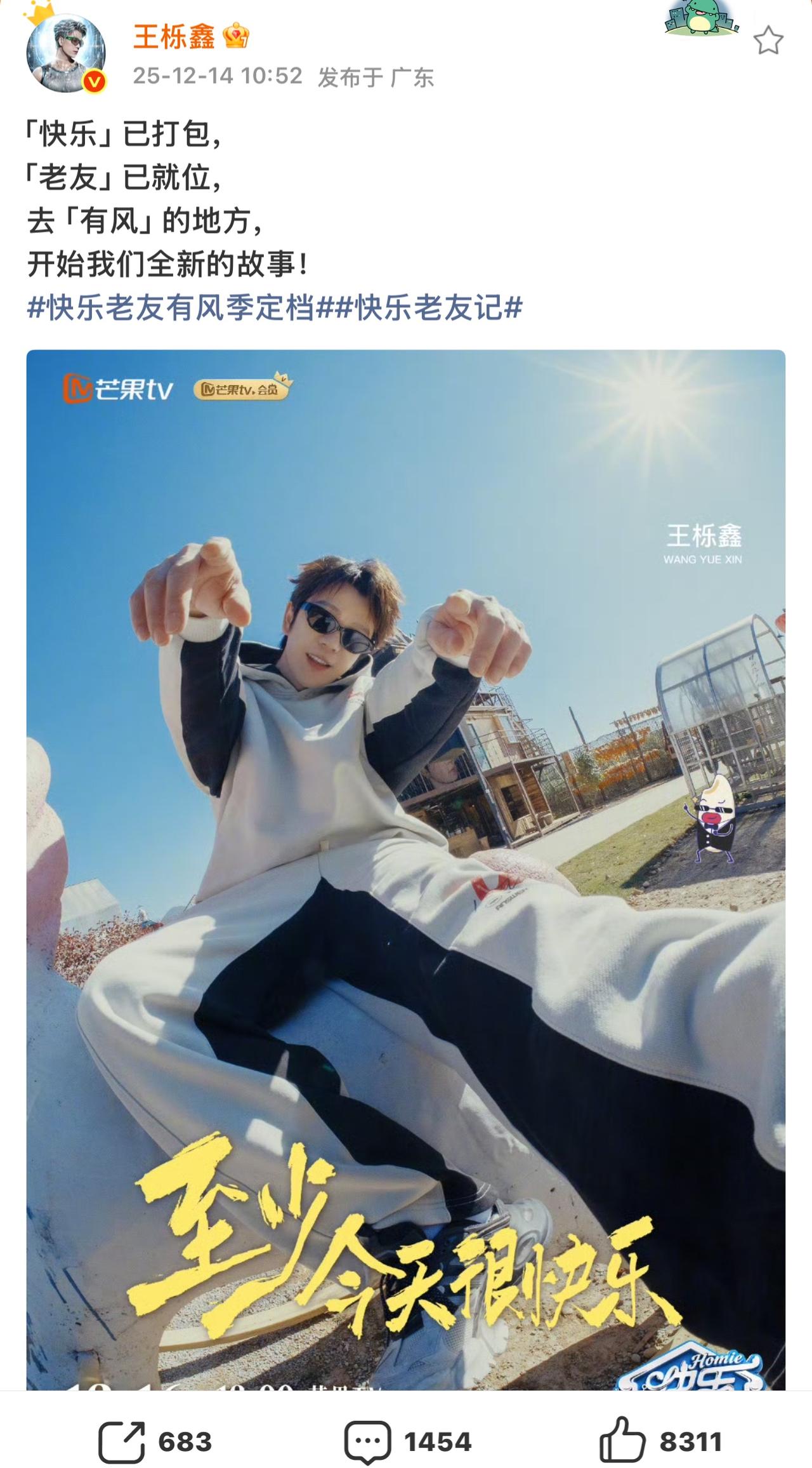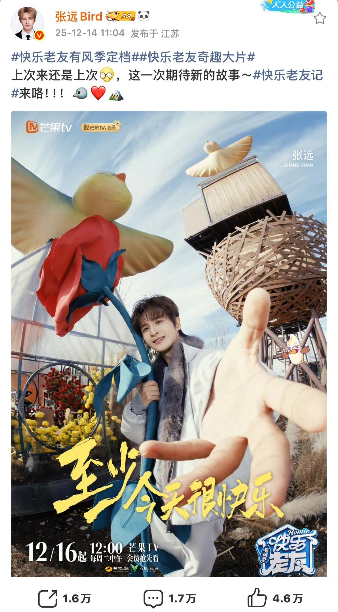 《快乐老友记3》官宣,看看哥几个怎么说的吧。 楚生点题“荒芜咖啡”,邀你度过惬意时光; 苏醒还是很拽,继续一段走心而不重复的文案; 糊糊的“快乐已打包”、“老友已就位”; 张远人气最高,无论转发、评论,还是点赞都高居榜首! 王铮亮继续在有风的地方嗨玩音乐🎵; 虎子已快乐到模糊,悠闲到发芽🌱……。 总之,太让人期待呀。
