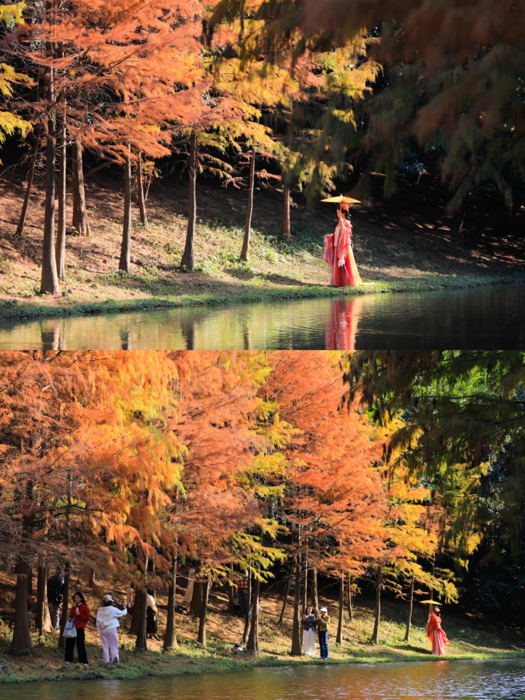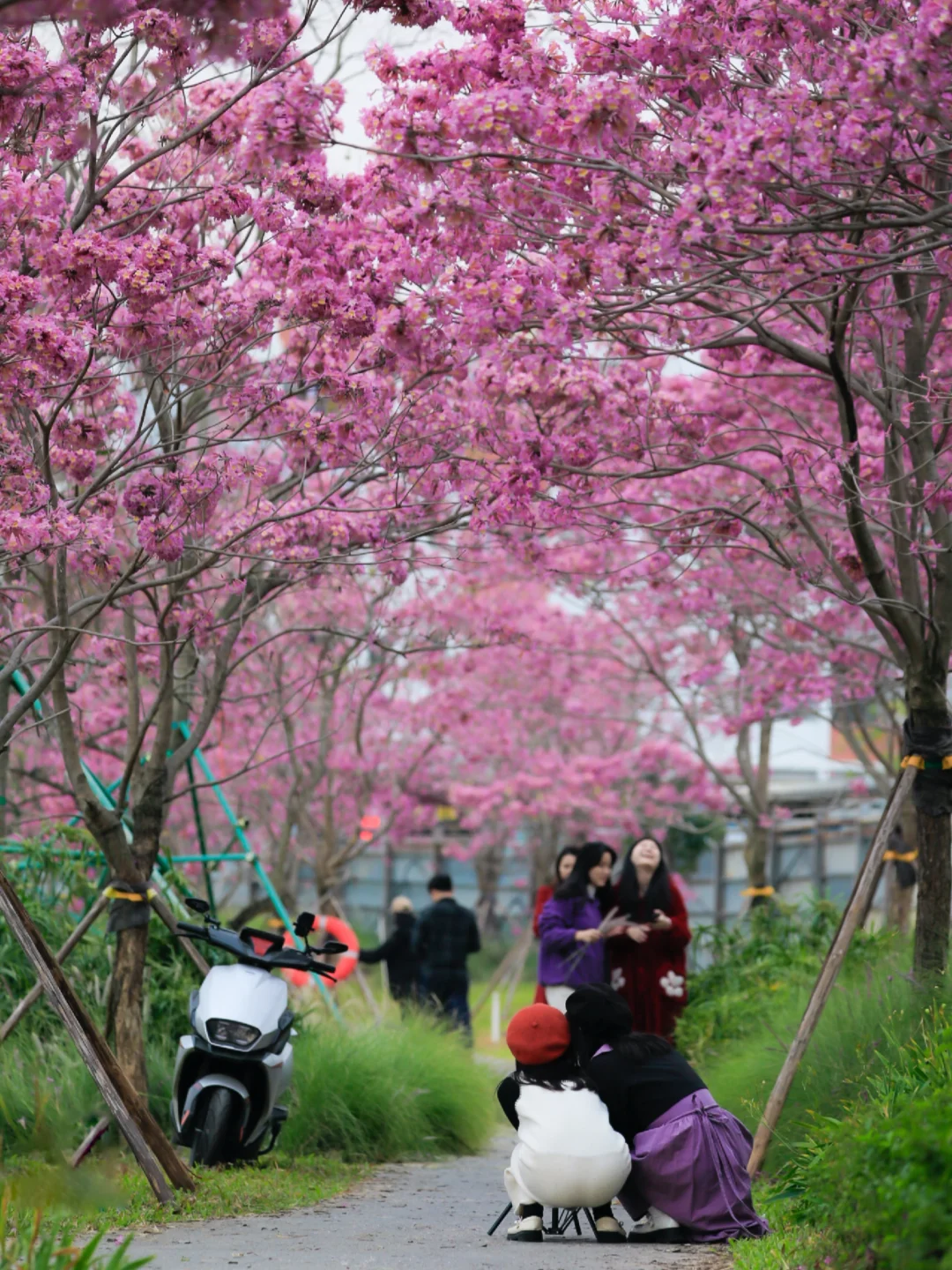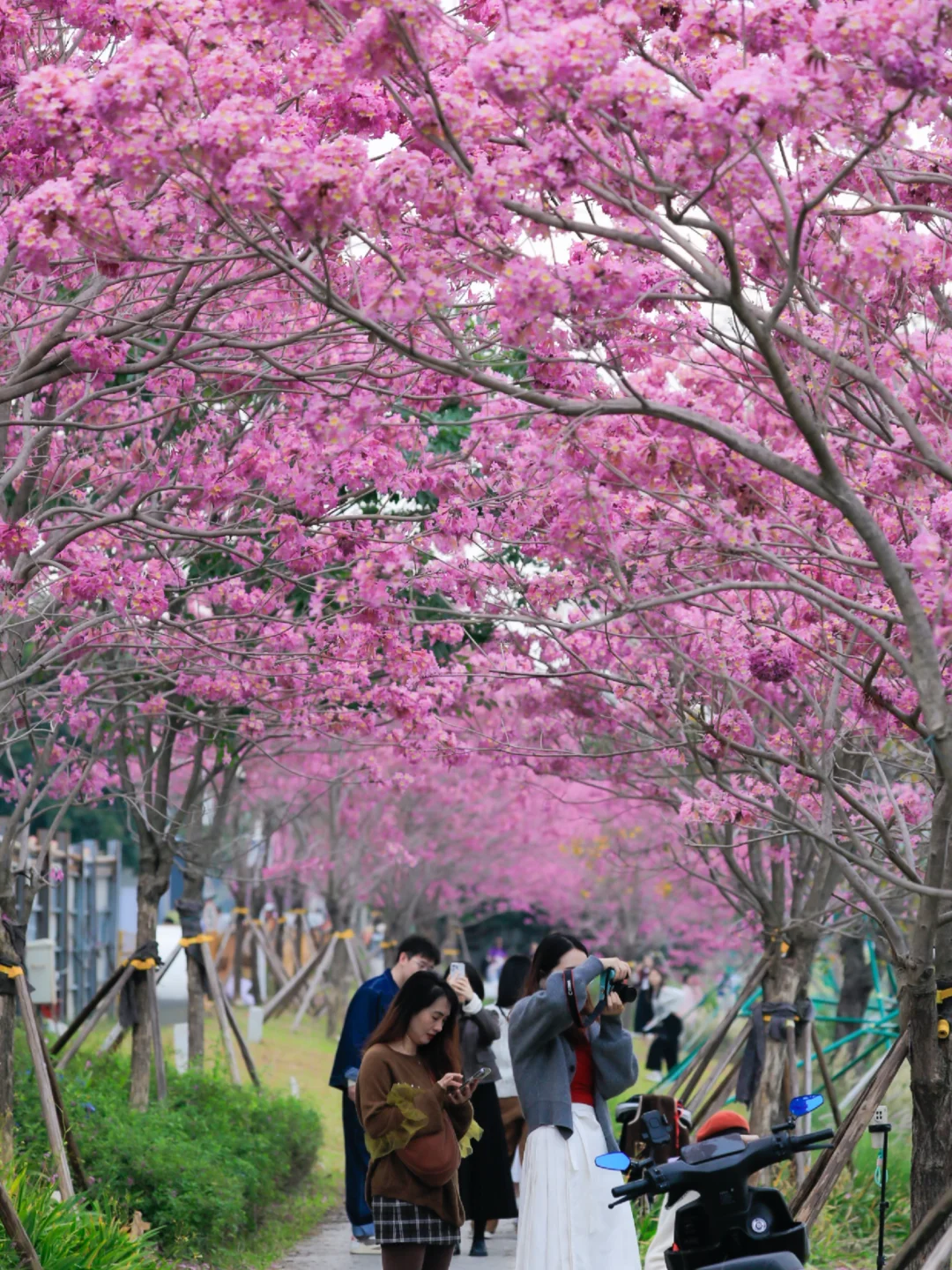 谁说冬天只有萧瑟?深圳的冬日,是藏在街角的粉色浪漫,是挂在枝头的紫色风铃🌸,是晕染湖畔的金色油画❗️ 博主亲自暴走全城,为你整理了这份 《冬日限定赏花地图》 ,收录异木棉、紫花风铃木、落羽杉三大顶流!每一个地点都实地探访过,建议直接收藏,承包你整个冬天的朋友圈C位大片📸 · 🌸 粉色暴击:异木棉(11-12月) ① 上木古社区:地铁10号线“木古站”D出口,导航上木古社区党群服务中心,步行400多米。院内有一棵“花王”级异木棉,下午三四点侧逆光拍摄绝美。 ② 观澜河沿岸:地铁4号线“清湖北站”A口出,导航至“清湖农贸批发市场”后走到河边,沿河岸散步,一路都是粉色花海。 · 🌸紫色浪漫:紫花风铃木(12月) ① 中心河公园:地铁2号线“湾厦站”A口出,往河边走即可,河道两旁绵延的紫色,非常梦幻。 ② 公馆南街:地铁9号线“怡海站”A口或“梦海站”C口出,步行约200米。街道两旁开满,很有都市浪漫气息。 ③ 沙井后亭:11号线后亭站A出口,导航“佳领域工贸大厦-东门”,步行或骑行1.5公里,位置较远,是非常小众的赏花地 · 🍂金色童话:落羽杉(12月-1月) 1️⃣ 仙湖植物园 仙湖植物园的落羽杉主要在桫椤湖、玉带桥和水生园这三个地方 🚇地铁:8号线仙湖路站C3口出站后步行650米。入园后可以坐园内巴士到天上人间,下车就是桫椤湖 2️⃣ 莲花山公园 主分布在莲花湖和漾日湖两个地方,莲花湖边的落羽杉比较高大,漾日湖边的则要矮一些 🚇漾日湖:3/10号线莲花村站D出口,导航"漾日湖"步行可达 🚇莲花湖:3/4号线少年宫站F1出口,从公园南门进去后往"莲花湖"方向走到湖边 3️⃣ 洪湖公园 从公园东门进去后,往左一直走到湖边就能看到一大片落羽杉 🚇地铁:7号线洪湖站A出口过天桥 4️⃣ 中心公园 中心公园的落羽杉有好几处,一片在D2区靠近红荔路的草坪上,另一片在E1区景观湖畔 🚇地铁:3号线华新地铁站 A1口,沿红荔路步行700米可到D2区 5️⃣ 聚龙山湿地公园 这里落羽杉林比较茂密,分布在河道两边,由于位置比较偏远,人比较少 🚘自驾:导航“聚龙山湿地公园洗手间A5﹣母婴室"停车后进公园往左边走5分钟 6️⃣ 荔枝公园 落羽杉主要分布在南门的揽月桥旁边和西门附近的湖边 🚇地铁:红岭南站4口出站就是公园南门