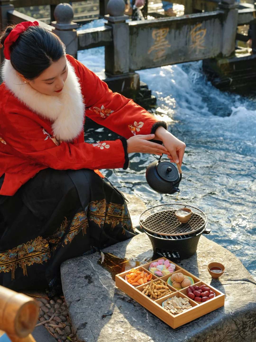 冬日里泉水汩汩涌动,空气中弥漫着煮茶暖香,真的被这波冰火交织的浪漫拿捏了!