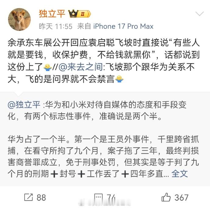 理记这钟谣棍,纯粹胡说八道,纯粹就是带华为节奏而已。陈震被禁到现在才几天?这种禁言,厂商提报,审核,光流程都走不完,看看官方的文件,这些是复印件,这明显的就是官方流程备案,流程要走挺长时间的。这波主要还是封禁的小号,这事儿我之前就听说了。理记这个人呢可能就是单纯的坏,前几天来总说了不是华为,不是余承东,他不信。来总怎么说也是执行的人,谁让执行的,对接的人怎么也比你熟,比他知道的多。结果拿出来一个余承东批评一些车评人的话来质疑,这也没必然联系呀,这人逻辑能力也有问题。总之就是,“不管,就是华为干的”
