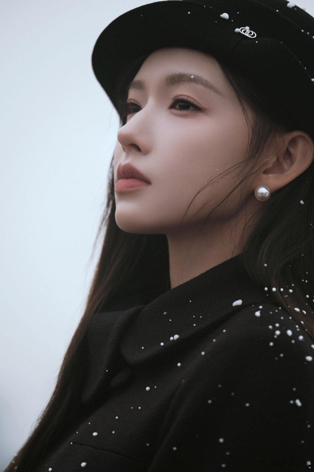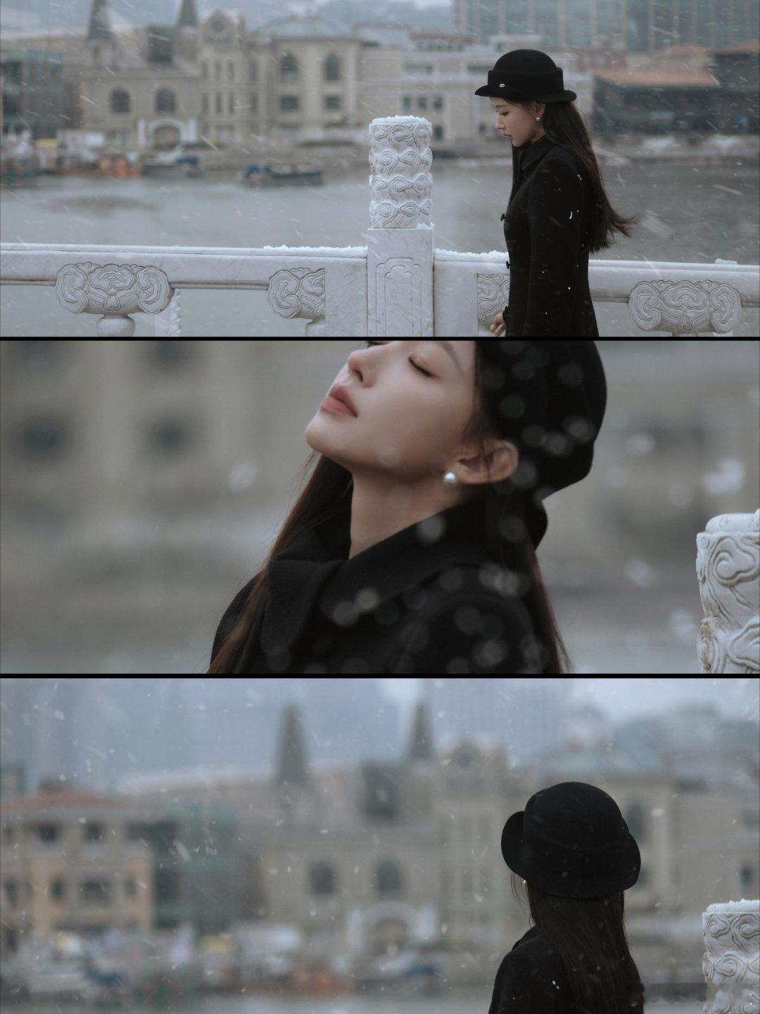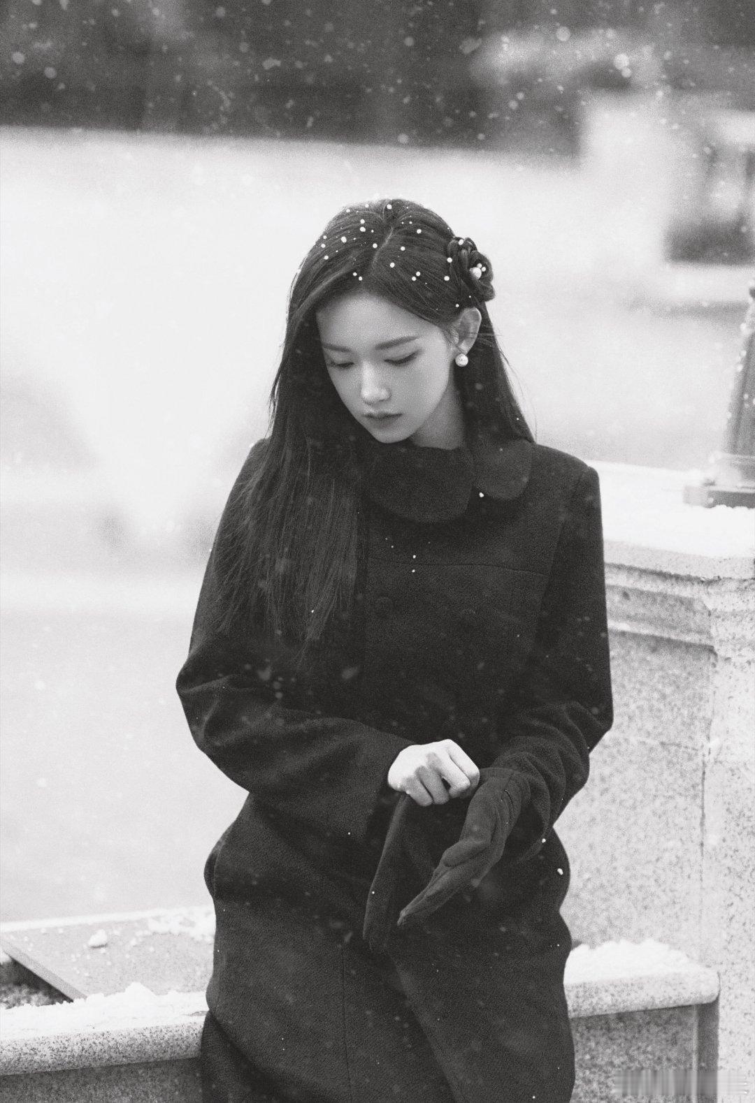 简约黑大衣也能穿出惊艳感程潇的冬日雪景大片 每一帧都像黑白电影