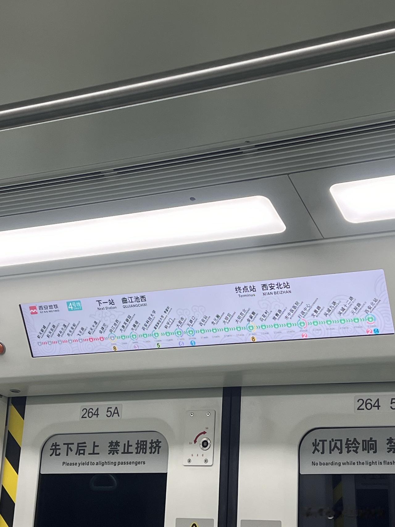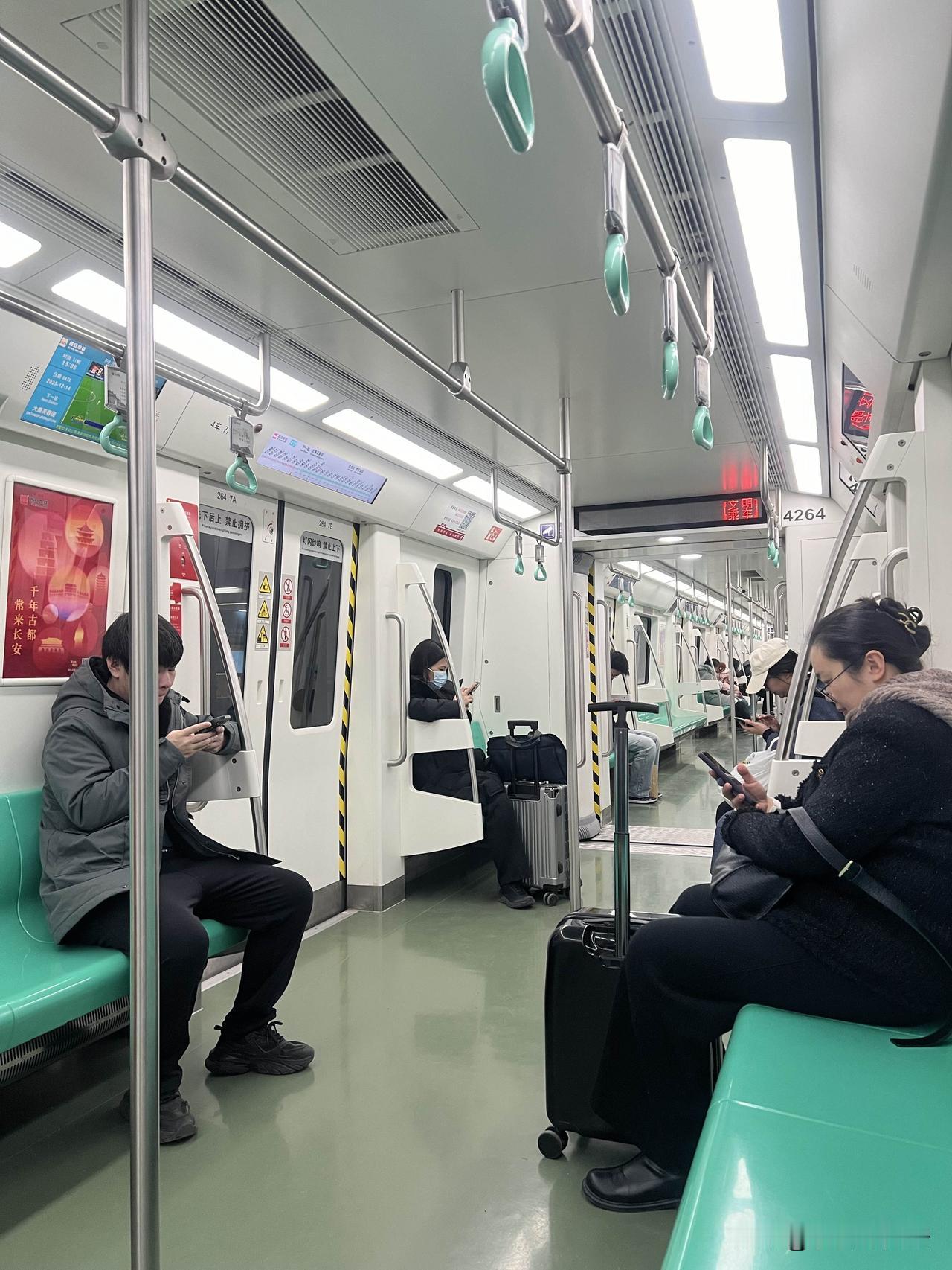 12月14日下午15时的地铁4号线 曲江池西往西安北站方向, 地铁进入大雁塔站后, 车厢开始满员,从大雁塔站出发后 车厢里上来了很多四川口音的乘客, 好像是在成都地铁🚊上一样。 西成高铁开通后,拉近了西安与 成都的时空距离,周末两城坐个高铁 跟串门似的。
